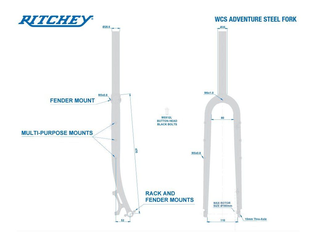Nová verzia modelu RITCHEY Ascent je inšpirovaná životnými zážitkami a nabáda vás, aby ste sa vydali na neprebádané priesmyky, kľukatými cestami a nekonečné chodníky. Myšlienka pôvodného modelu Ascent zostáva zachovaná, zároveň sa rozširuje jeho prispôsobivosť o moderné prvky a toľko žiadané detaily. Či už sa rozhodnete jazdiť akokoľvek, možnosti jazdy na modeli Ascent sú neobmedzené. Obsahuje- úchyty na nosiče a blatníky, 3 viacúčelové úchyty (2 na vidlici, 1 na rám)- oceľovú pevnú vidlicu Ritchey s 1-1/8"