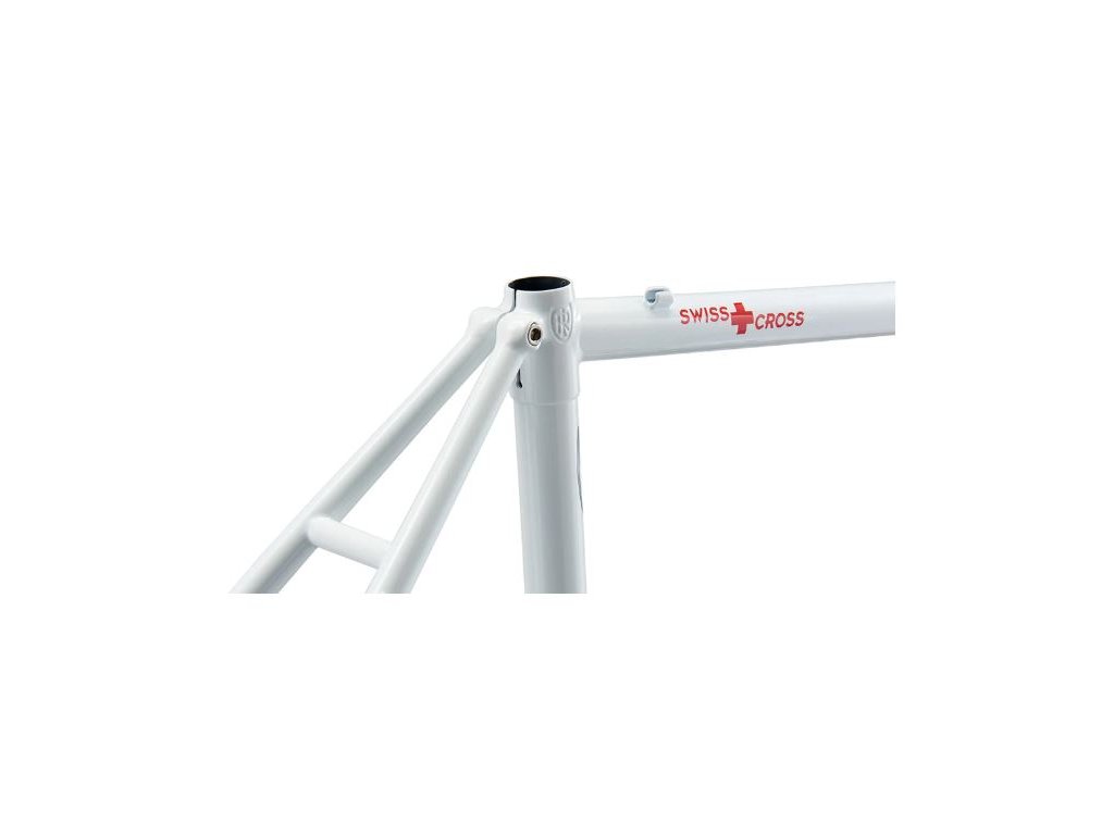 Či už pre cyklokrosové preteky, alebo rýchlu gravelovú jazdu zostáva Swiss Cross ľahký a poddajný a ponúka víťaznú kombináciu istej odozvy a ostrej ovládateľnosti. Jeho geometria pripravená na preteky a zapáli súťaživého ducha, zatiaľ čo voľný priestor pre 40mm plášte osloví tých, ktorých odvaha siaha ďalej než len na označenú závodnú trať. Swiss Cross je starostlivo zvarený metódou TIG s patentovanými trikrát rezanými oceľovými trubkami Ritchey Logic, ktoré teraz majú aktualizovanú jednodielnu konštrukciu priehradovej konštrukcie pre brzdy s plochým uchytením. Poskytujú rovnakú tuhosť a pevnosť ako predchádzajúce uchytenie a zároveň výrazne znižujú hmotnosť reťazovej vzpery. Či už sa jedná o jazdenie vyčerpávajúcich kilometrov na gravel bicykli alebo o cyklokrosové pretekanie, nový Swiss Cross je viac ako schopný zvládnuť všetko.
