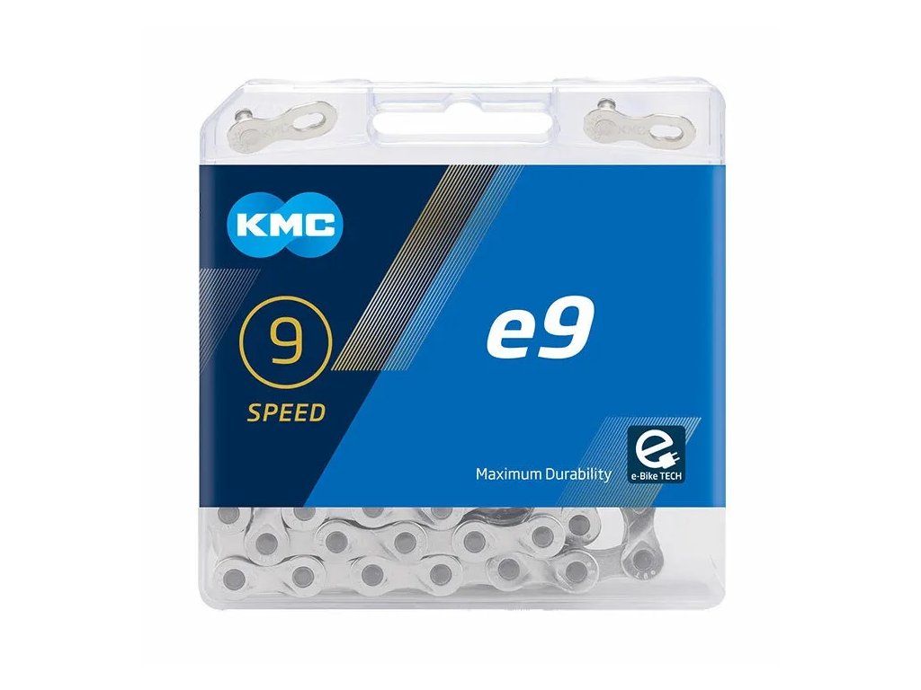 KMC e9 Silver je 9-rýchlostná reťaz špeciálne navrhnutá pre elektrobicykle so stredovými motormi, kompatibilná s radením Shimano aj SRAM.Maximálna výdrž vďaka zosilneným nitomVrátane spojky MissingLinkPočet článkov: 122X-Bridge – špeciálny tvar článkov umožňuje veľmi rýchle a plynulé radenie s tichším chodom