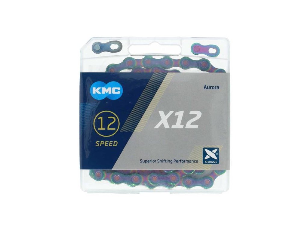 KMC X12 Aurora je 12-rýchlostná reťaz pre horské aj cestné bicykle a elektrobicykle.Špeciálna dúhová povrchová úpravaVrátane spojky MissingLinkNesmerový dizajnPočet článkov: 126Vysoko presné zkosenie pre dokonalý chod radenia