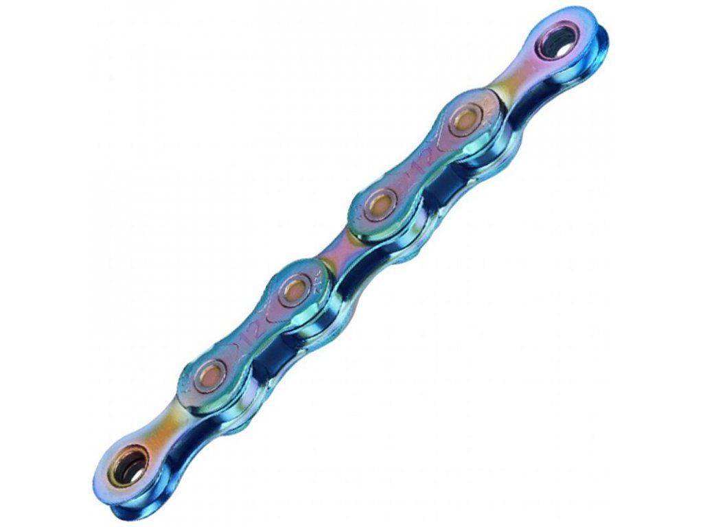 12-rýchlostná reťaz KMC X12 Aurora s exkluzívnou dúhovou povrchovou úpravou, kompatibilná s radením Shimano, SRAM aj Campagnolo.