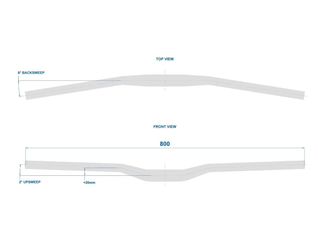 Široké MTB riadidlá so stredným zdvihom, šírka 800 mm, zdvih 20 mm, materiál double-butted 6061 alloy, hmotnosť 395 g.