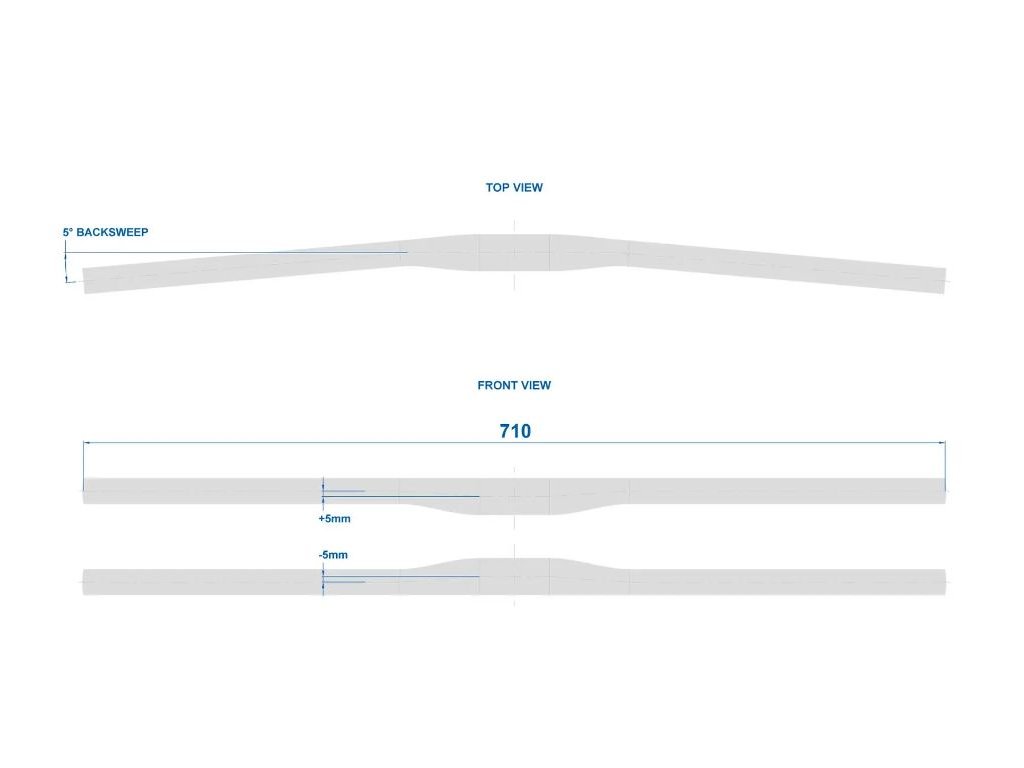 MTB XC športové riadidlá, šírka 710 mm, zahnutie 5 stupňov, matná povrchová úprava. Hmotnosť 276 g.