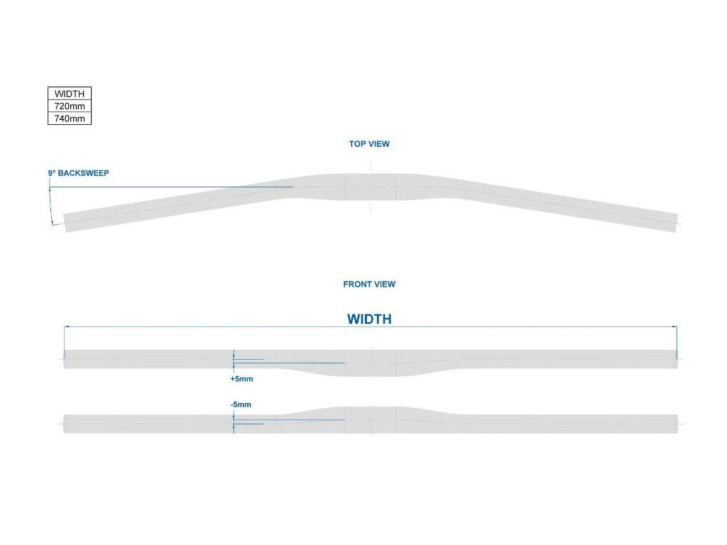MTB XC športové riadidlá, šírka 720 mm, zahnutie 9 stupňov, matná povrchová úprava. Hmotnosť 276 g.
