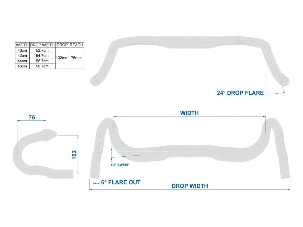 Comp VentureMax V2 je nový model gravelových riadidiel vyrobených z hliníka 6061, vhodných aj pre bikepacking.Riadidlá sa počas svojho dlhoročného vývoja stihli vyznačiť svojim krátkym reachom, plytkým dropom a účelným flare, čím zo seba urobili pohodlný a zábavný model riadidiel pre gravel jazdcov.Oproti svojmu predchodcovi ponúka tento model v hornej časti riadidiel ergonomický aero dizajn v rozmere 38x22,5 mm a dodávajú tak jazdcovi väčší pocit pohodlného úchopu.Ešte viac možností úchopov poskytuje 24 ° vyhnutie riadidiel do strán (24 ° drop flare).