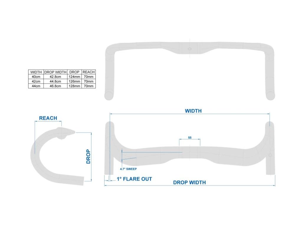 Špičkové závodné karbónové riadidlá s ergonomickým úchopom hornej časti pre vaše pohodlie, oblúk Neoclassic 128/73 mm Materiál: KarbónRozmery: 400,420,440 x 31,8 mmDrop: 126 mm (42 cm), 128 mm (44 cm)Reach: 77 mmHmotnosť: 235 g