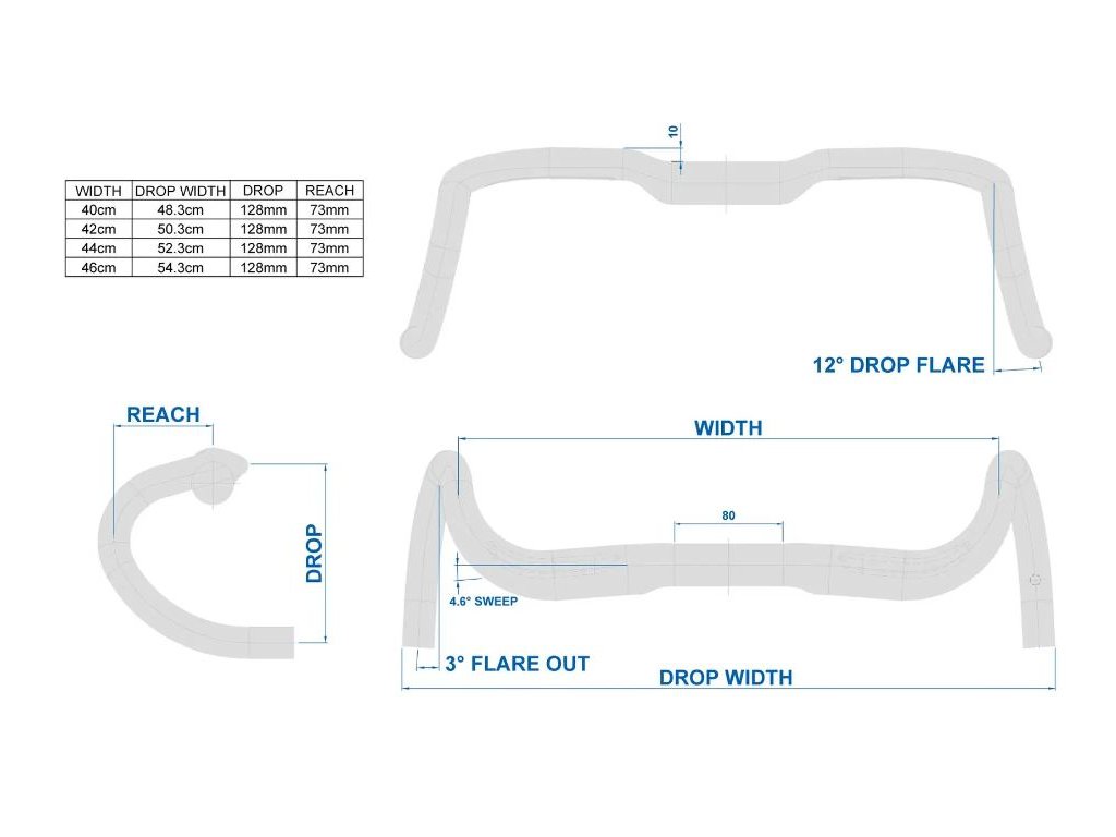 Sportovní gravel řídítka z dvakrát zeslabované hliníkové slitiny AL6061-T6, s Evo ergonomickým tvarem horního úchopu, Curve tvarem oblouku a EvoMax rozšířením spodní strany oblouku do stran.ErgoMax, navržený pro zvýšení kontroly a pohodlí při jízdě na sypkých površích, je ideální pro gravel bike, protože umisťuje ruce do širší a stabilnější polohy při úchopu za oblouky. ErgoMax řídítka lze stejně dobře osazovat na silničních kolech, která jsou stavěna pro vytrvalost, jejich ergonomie poskytuje bezkonkurenční pohodlí.Vrchní část využívá 10mm zdvih oproti upínací oblasti představce, což nabízí o něco vzpřímenější jízdní pozici. Poté jsou řídítka oválná a mají mírný sklon 4° vzad, aby rovnoměrněji rozložily váhu jezdcových rukou a zápěstí a také je dostaly do přirozenější polohy.