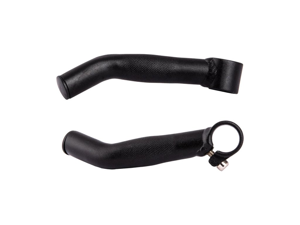 Dlhé hliníkové bulhorny s mierne zahnutými koncami, zvárané. Stredná časť anatomicky tvarovaná s jemným vrúbkovaním pre dokonalý úchop.