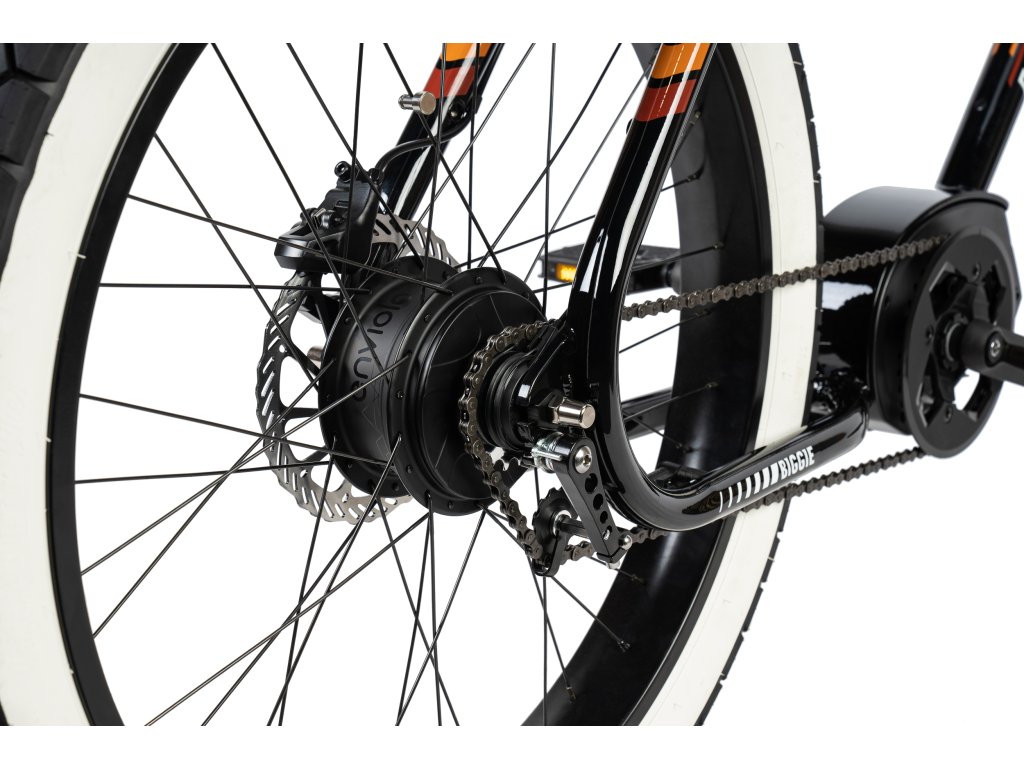 Predstavujeme The Biggie, ultimátny eBike pre tých, ktorí chcú dochádzať v štýle a pohodlí. Navrhnutý s ohľadom na tradíciu aj moderné inovácie, je The Biggie ideálny pre mestské jazdy a pre tých, ktorí si cenia pohodovú, ale sofistikovanú jazdu. Či už prechádzate mestom na ceste do práce, alebo si užívate pokojnú víkendovú jazdu, The Biggie sľubuje hladký a štýlový zážitok.Ručne vyrobený v Európe s dôrazom na starostlivosť, čo zaručuje najvyššiu kvalitu a dôraz na detaily. Špeciálne navrhnutý pre jazdcov s výškou medzi 175 a 200 cm, tento eBike je dokonale prispôsobený vašim potrebám, ponúkajúci pohodlnú a uvoľnenú polohu za riadidlami pre bezstarostnú jazdu. Jednoduché ovládanie a stabilná konštrukcia vám dodajú úplnú istotu na cestách, takže sa môžete sústrediť na radosť z jazdy.V srdci The Biggie sa nachádza motor Bosch Performance CX, známy svojou spoľahlivosťou a silným výkonom. V kombinácii s batériou s kapacitou 500 Wh tento systém zabezpečuje dostatok energie a dojazdu pre zvládnutie každodenných jázd aj víkendových dobrodružstiev.Pre tých, ktorí od svojich každodenných jázd vyžadujú viac, ponúka The Biggie dokonalú rovnováhu medzi zábavou a funkčnosťou. Vďaka svojej uvoľnenej, vzpriamenej polohe a vynikajúcemu rozhľadu vám poskytuje perfektný prehľad o vašom okolí a vozovke.
