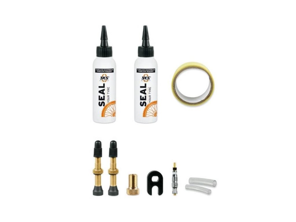 Kompletný set pre prechod na bezdušový systém plášťov. Zmes je použiteľná aj na opravy pre diery až 6 mm. Obsah zmesi 125 ml je dostačujúca pre XC/AM set kolies. Obe fľaštičky 2x 125 ml pre enduro a DH kolesá.Obsah sady:2x 125ml Seal your tyre zmesi2x tubeless ventilčeky1x 9m páska do ráfika (25/29 mm)1x o oslobodení ventilčeka1x náhradný ventilček2x hadička pre plnenie plášťov