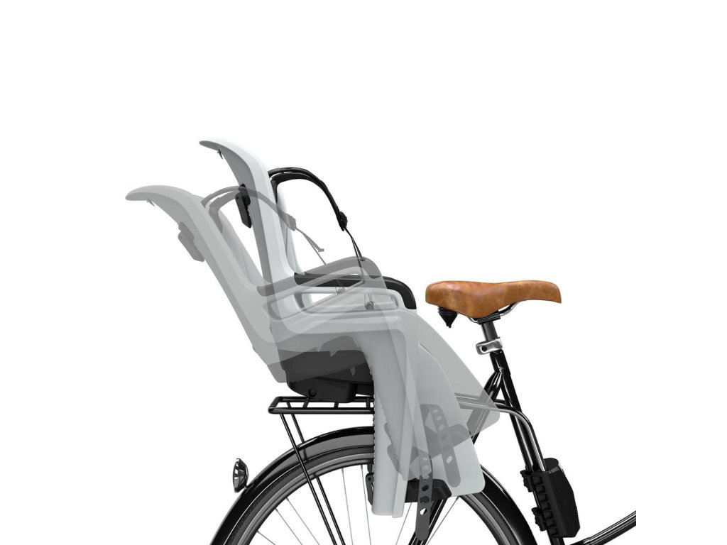 Detská sedačka na bicykel má tiež funkciu sklápania pre väčšie pohodlie a oddýchnutie si na cestách.