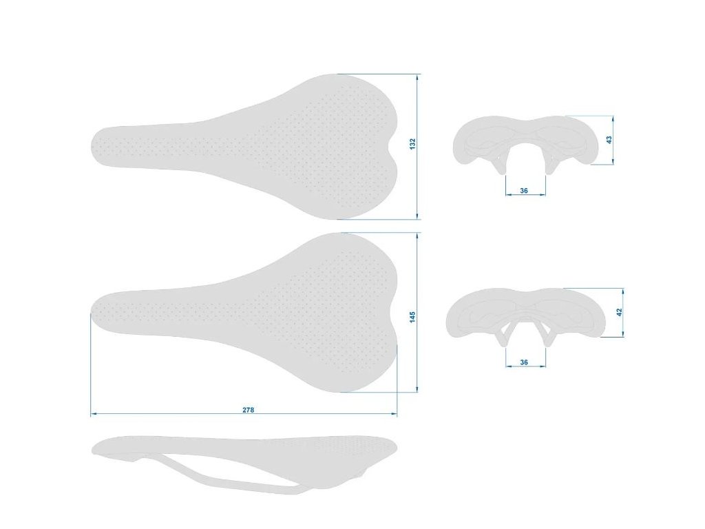 Superľahké nízkoprofilové sedlo, plochejší tvar, karbónové lyžiny o 8x8,5 mm, škrupina z nylonu so uhlíkovými vláknami, polstrovanie superľahká PU pena, hmotnosť 150 g.