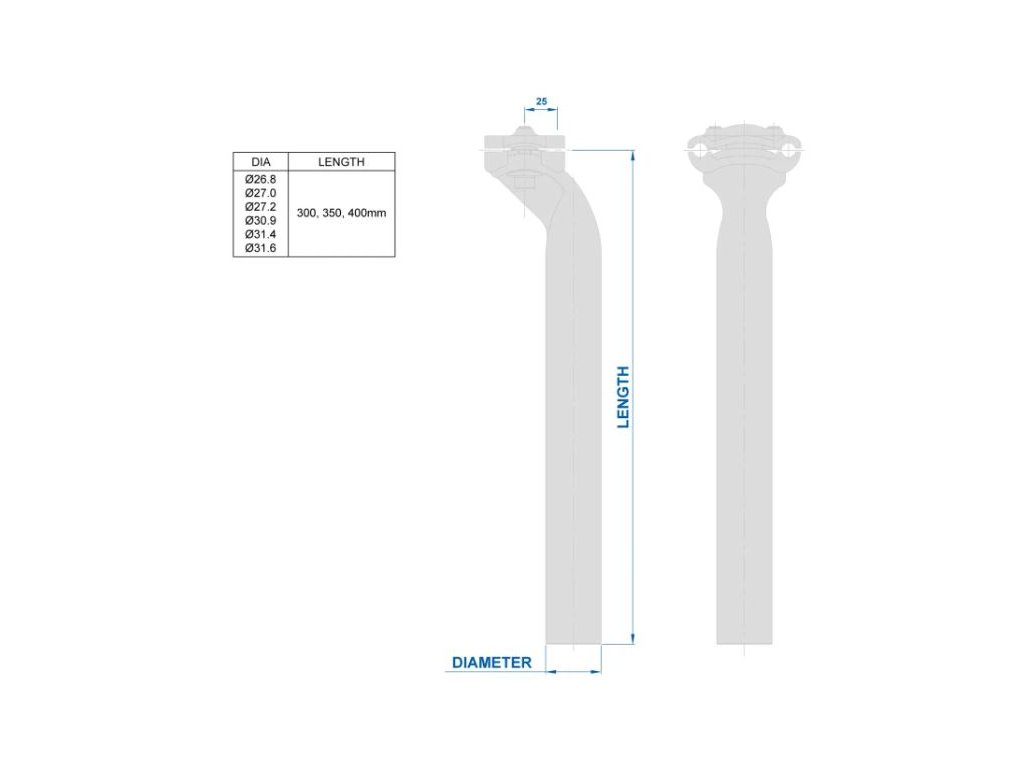3D kovaná sedlovka Ritchey ktorej osvedčená konštrukcia s dvoma skrutkami poskytuje vo svojej triede najlepšiu rovnováhu medzi pevnosťou, hmotnosťou a jednoduchou nastaviteľnosťou. Nízkoprofilová objímka znižuje namáhanie ľahkých lyžín a nedochádza k ich vybočeniu.Materiál: hliník 6061Priemer: 26.8, 27.0, 27.2, 30.9, 31.4, 31.6 mmCelková dĺžka: 300, 350, 400 mm (vrátane 100 mm minimálnej vložky)Offset: 25 mmSedlová objímka: štandardHmotnosť: 260g (27.2x350 mm)Farba: čierna