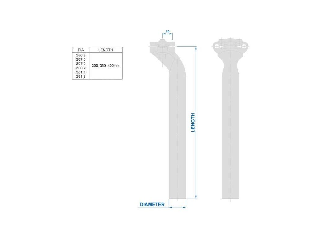 3D kovaná sedlovka Ritchey ktorej osvedčená konštrukcia s dvoma skrutkami poskytuje vo svojej triede najlepšiu rovnováhu medzi pevnosťou, hmotnosťou a jednoduchou nastaviteľnosťou. Nízkoprofilová objímka znižuje namáhanie ľahkých lyžín a nedochádza k ich vybočeniu.Materiál: hliník 6061Priemer: 26.8, 27.0, 27.2, 30.9, 31.4, 31.6 mmCelková dĺžka: 300, 350, 400 mm (vrátane 100 mm minimálnej vložky)Offset: 25 mmSedlová objímka: štandardHmotnosť: 260g (27.2x350 mm)Farba: čierna