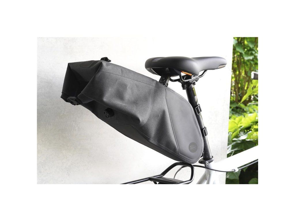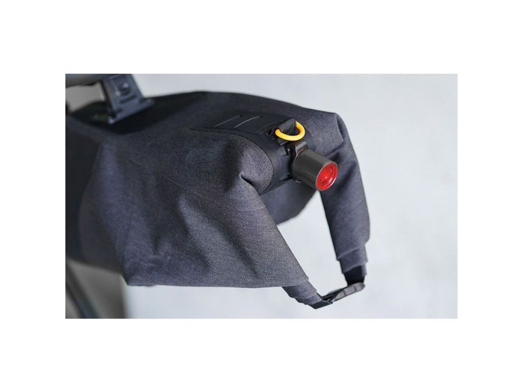 Vlastnosti: voděodolný materiál, 2 poutka na přichycení k sedlovce, inbus na nastavení sklonu, poutko na blikačku, ramenní popruh pro použití mimo kolo