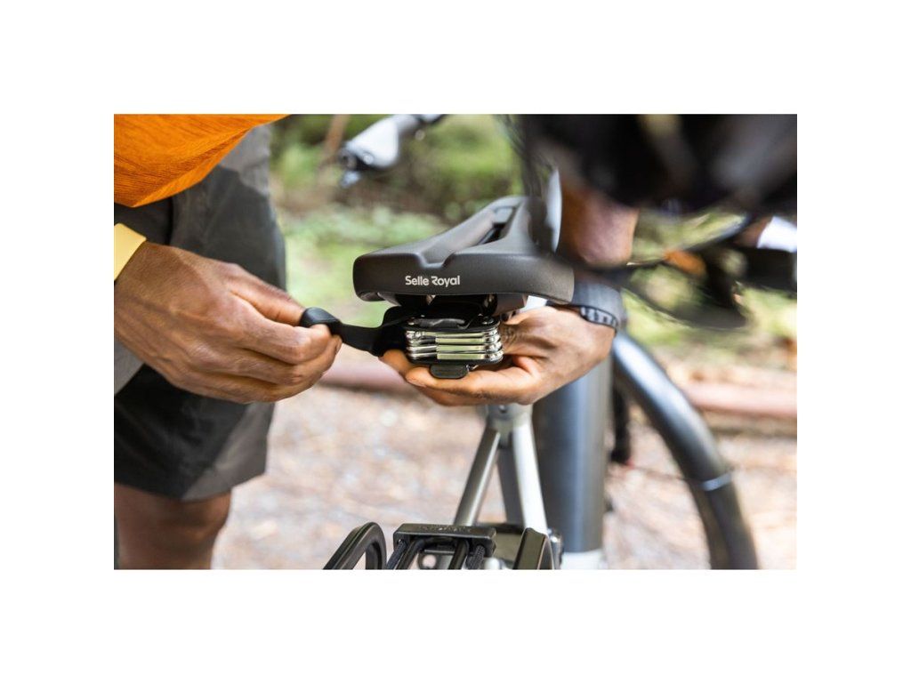 Multi Tool: Buďte vždy připraveni na neočekávané. Toto multifunkční nářadí se připevňuje na zadní část vašeho sedla Selle Royal vybaveného integrovaným klipovým systémem (ICS), aby byl vždy po ruce pro rychlé úpravy a opravy na vašich cestách. Kompaktní 9funkční nářadí je chráněno protinárazovým pryžovým pouzdrem pro roky spolehlivého používání.