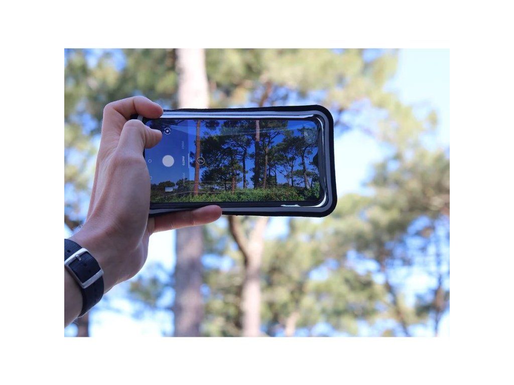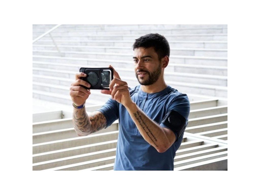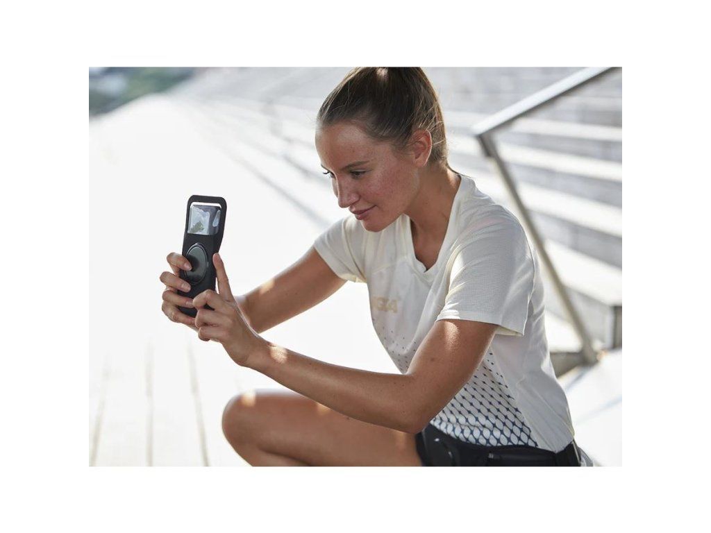 Magnetické foto pouzdro na telefon lze používat s držákem na řidítkách nebo s oběma běžeckými pásy. Díky průzoru na zadní straně pouzdra lze pořizovat fotografie z výletů, aniž byste museli telefon z pouzdra vyndávat.