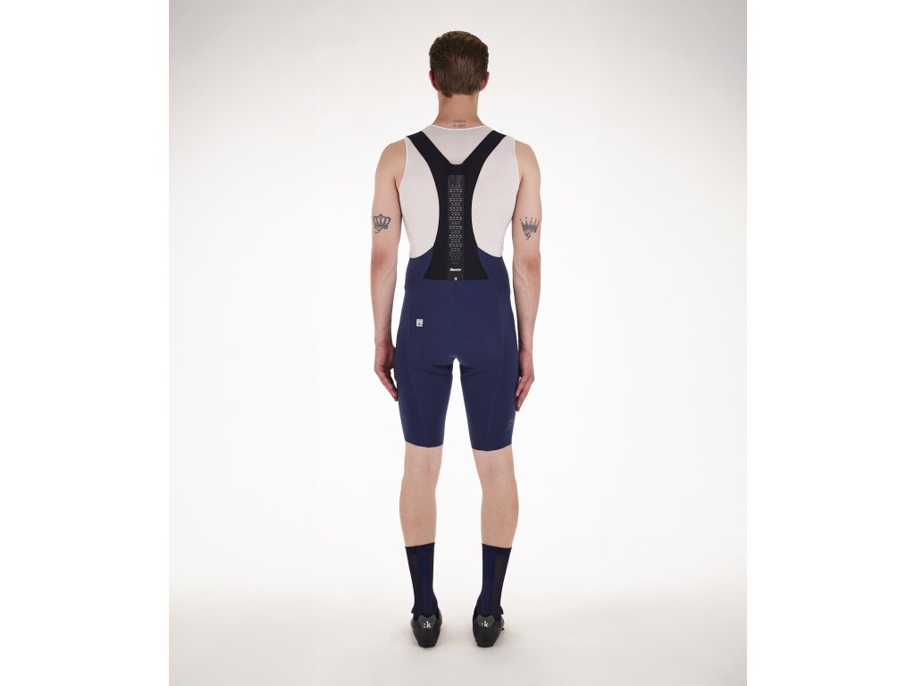 SANTINI Unico sú kraťasy s trakmi vyrobené z kvalitných tkanín s vysokou kompresiou. Strategicky strihané šortky, ktoré sú vzadu prekrížené, s ľahkým a priedušným sieťovaným panelom vpredu podporujú vetranie a šortky zostávajú na svojom mieste aj napriek šlapaniu do pedálov vďaka švom bez potreby úchytov na nohy. Super mäkká tkanina neobmezuje pohyb, bezšvový strih podporuje pohodlie, pretože švy boli obmedzené na to najnutnejšie a stehná majú tepelne zvárané švy pre pohodlie bez puzgierov. Model má silikónový lem, takže tkanina prilieha k pokožke, a vysoko výkonnú vložku C3W s ochranným plomom 3D povrchom.