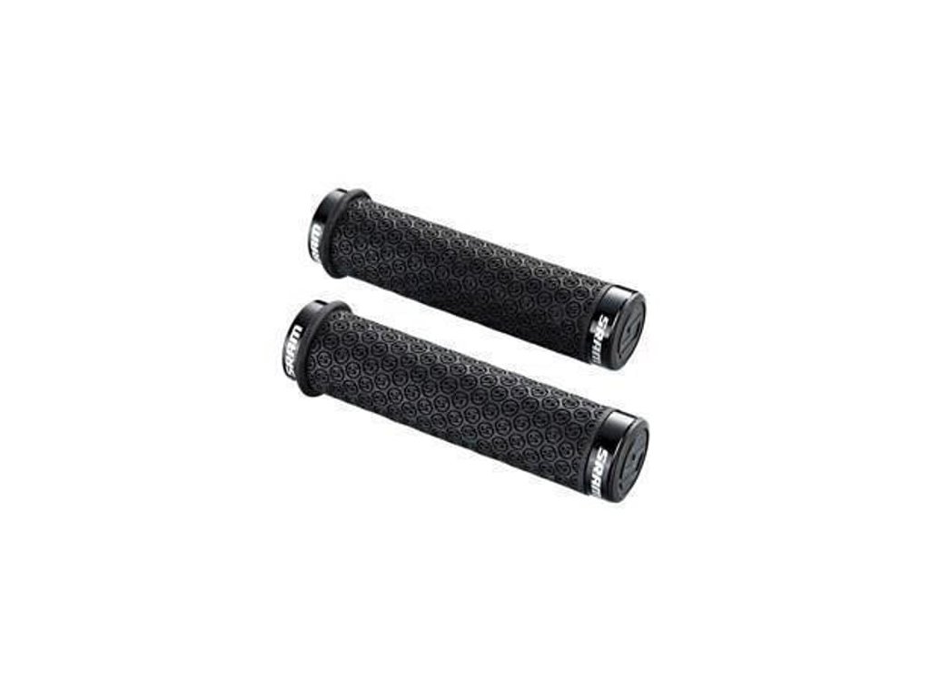 SRAM DH silikónové zámkové gripy čierne s dvojitými objímkami a koncovkami riadidiel.