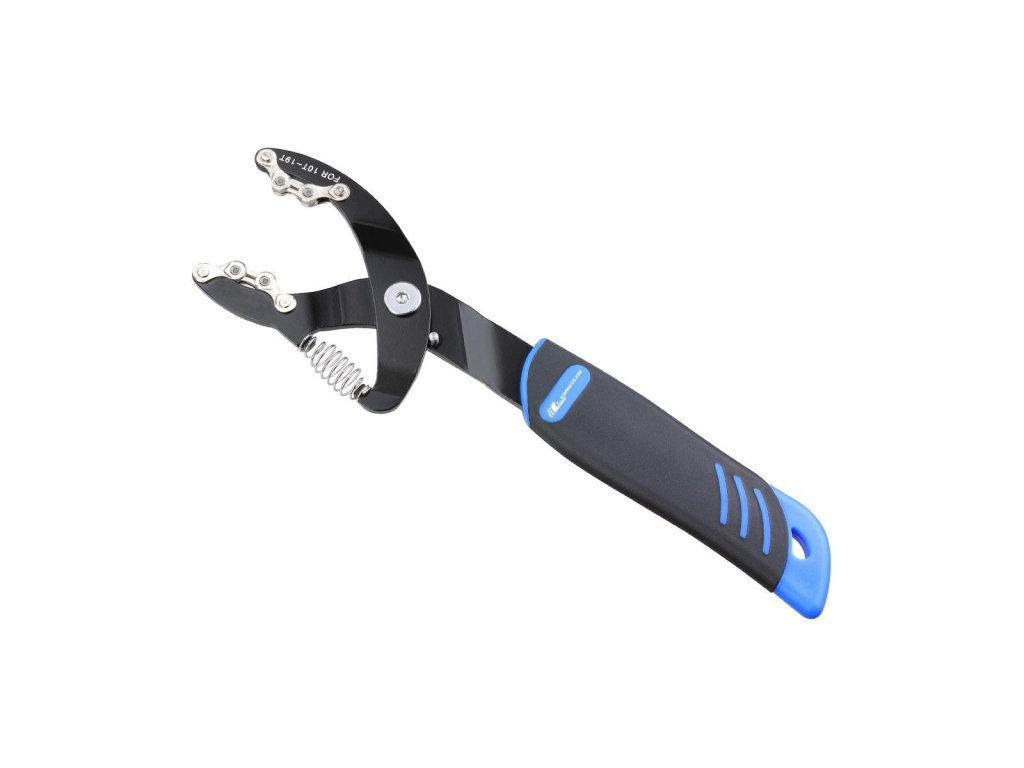 Inovatívny univerzálny sťahovač kazety pre 5-11 kolo s ergonomickou rúčkou a spätnou pružinou. Jednoduchá práca bez kontaktu rúk so špinavými súčiastkami.