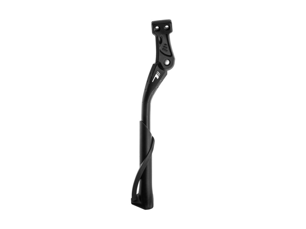 Robustný a pevný hliníkový stojan na zadnú vidlicu s montážou na návarky s rozpätím dier 18 mm. Vhodný pre bicykle s 24-28" kolesami, ktoré sú ťažšie, ako napríklad elektrobicykle. Jednoduché jemné nastavenie dĺžky stojana pomocou upevňovacej skrutky na nohe stojana.