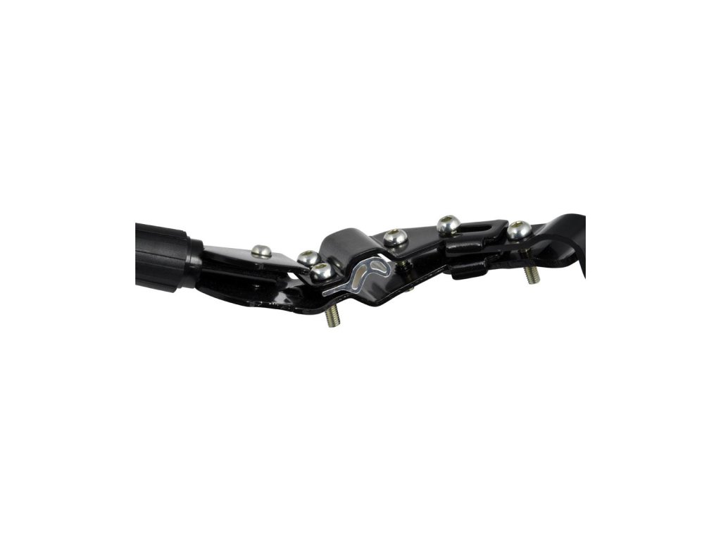Hliníkový stojan VERSION, na zadnú vidlicu, nastaviteľný na 24"-28" kolesá. Univerzálny na všetky rámy, s adaptérom na hranaté trubky. Možnosť nastavenia uhla zadnej vidlice.