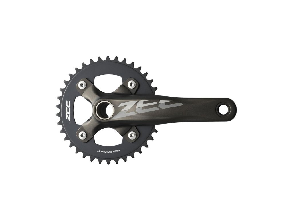 Kľuky ZEE FC-M640 sú určené pre najagresívnejší jazdný štýl. Náročný trail ani zjazd už nebudú prekážkou. Svojou konštrukciou zabezpečia efektívny prenos sily. Dvojdielna konštrukcia s integrovanou oskou 2-PIECE. Hrubostenná konštrukcia kľuky, silná oceľová oska a pedálový závit z oceľového materiálu dodajú spoľahlivosť a tuhosť celku. Kľuky sú určené pre prevody 1x10. Sú dodávané s prevodníkom s 36 zubami bez napináku reťaze.