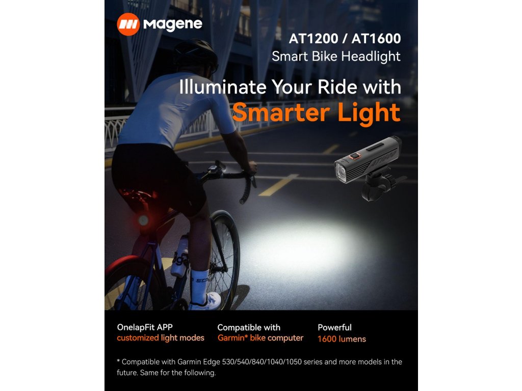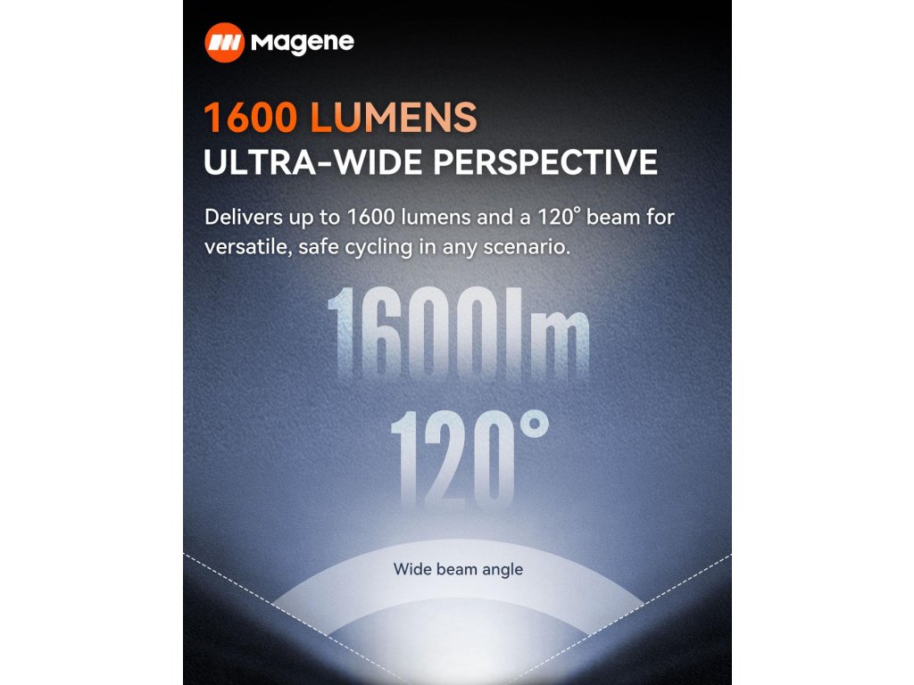 MAGENE AT1600 je inteligentné predné svetlo na bicykel s výkonom až 1600 lúmenov, ktoré zaručuje vynikajúcu viditeľnosť aj v najnáročnejších podmienkach. Vďaka širokému 120° svetelnému lúču si užijete bezpečnú a komfortnú jazdu, či už pri dochádzaní do práce, tréningoch alebo nočných výletoch.