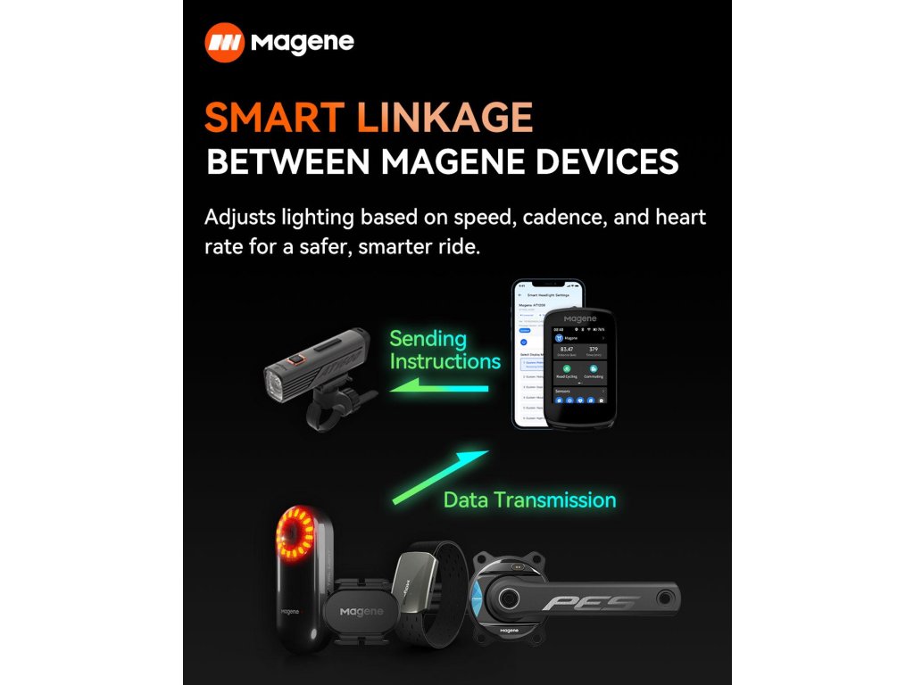 Kompatibilita s Garmin a Magene cyklopočítačmi – Ovládajte svetlo priamo z vášho zariadenia. Kompatibilné modely: Garmin Edge 530/540/840/1040/1050 a ďalšie budúce modely, Magene C506/C606 a ďalšie budúce modely.