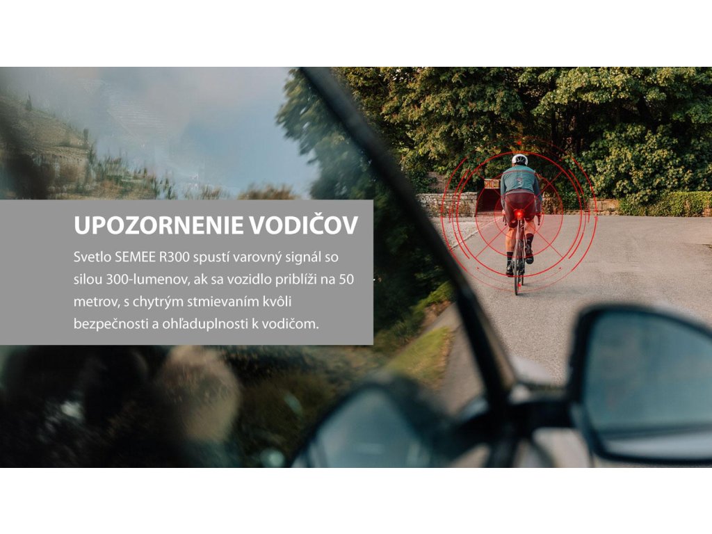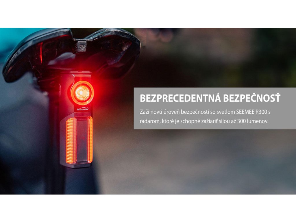 Radarové zadné svetlo SEEMEE R300 poskytuje výrazný míľnik v inovácii bezpečnostných prvkov v cyklistike. V dobe elektrických vozidiel a ich tichého chodu je tradičné spoliehanie sa na sluchové a vizuálne podnety z hľadiska bezpečnosti veľmi rizikové. Až 40 % všetkých smrteľných nehôd na bicykli je spôsobených nárazom zozadu a preto je radarové svetlo ideálnou formou pre zaručenie bezpečnosti pri jazde na bicykli. So svojou najmodernejšou radarovou technológiou nie je SEEMEE R300 len zadným svetlom, ale aj vysoko efektívnym bezpečnostným opatrením.