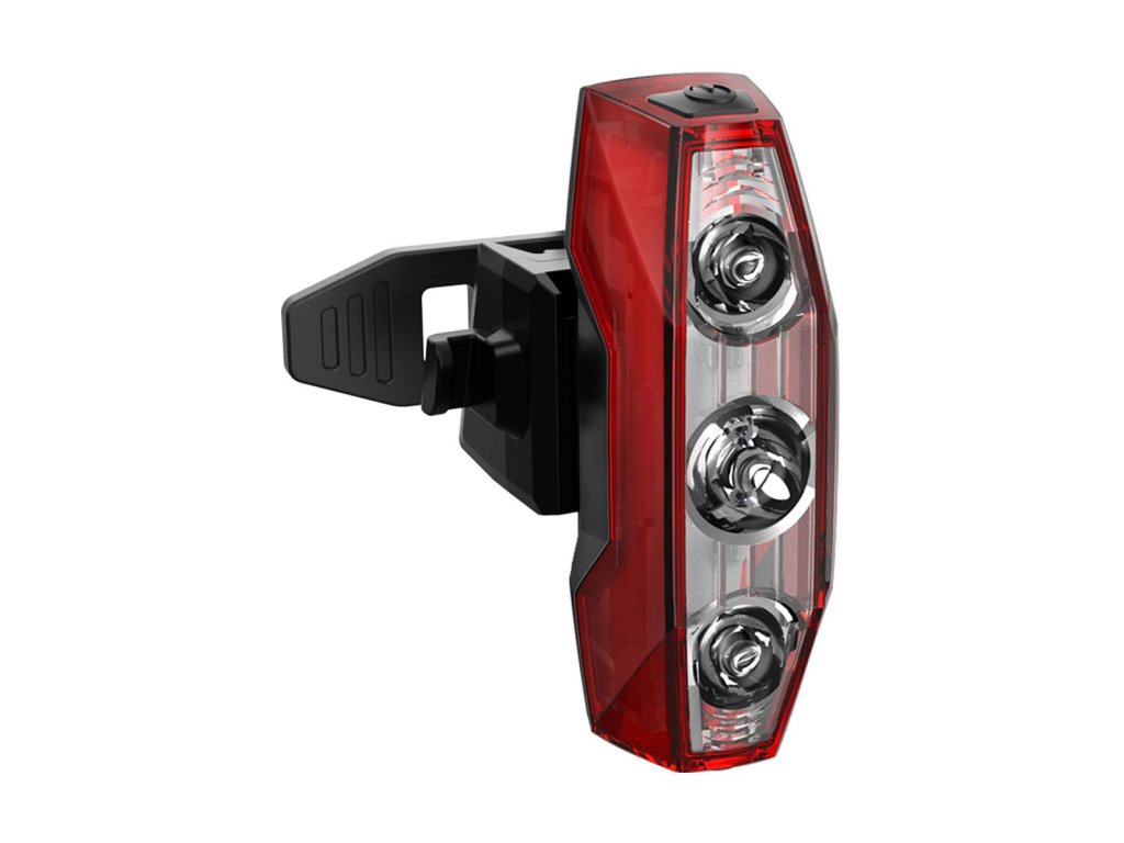 Vysoko svietivé dobíjacie zadné svetlo s technológiou Super Bright Red LED a funkciou automatického prebudenia. 5 super jasných červených LED diód dosahuje výkon až 400lm. Funkcie: Stlačením tlačidla na viac ako 2s sa svetlo zapne. Postupnými krátkymi stlačeniami sa prechádza medzi jednotlivými funkciami: 100 % výkon (5 hod) - 50 % výkon (8,5 hod) -Blikanie (10 hod) - Pohyblivý (10 hod). Stlačením tlačidla na viac ako 2s sa svetlo vypne. Funkcia automatického prebudenia: po 4 minútach státia bez pohybu svetlo prejde do stavu spánku a po detekcii pohybu sa opäť rozsvieti. Súčasťou svetla je indikátor slabej batérie a úplného nabitia. Svetlo je IPX4 vodeodolné. Balenie obsahuje USB-C kábel. Doba nabíjania cca 2-3 hod.
