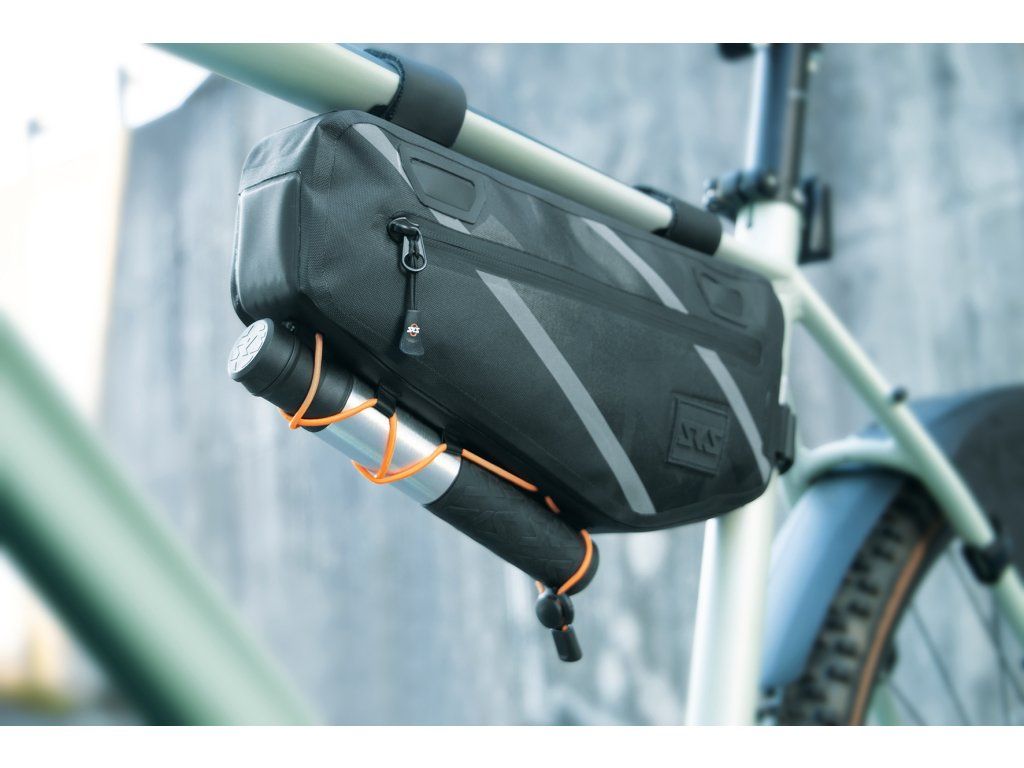 Viac než dostatok úložného priestoru na dlhšie výlety na bicykli ponúka EXPLORE FRAME BAG, ale zároveň udržiava obsah suchý a čistý. Je to dané jednak celosvareným prevedením a jednak extrémne robustnou a odolnou tkaninou. Zipsy s praktickou funkciou Easyzip sú navyše privarené a chránia vybavenie pred vlhkosťou a nečistotami.S praktickým pútkom na balenieVďaka suchým zipsom s ochranou rámovej trubky šetrnou k laku je možné brašňu na rám flexibilne prispôsobiť rámu bicykla. Protišmykové suché zipsy sú extra dlhé, ale dajú sa ľahko skrátiť alebo vymeniť. Gumička na spodnej strane je praktická najmä na montáž mini pumpy, pláštenky, müsli tyčinky či iných drobností. Reflexné pruhy poskytujú lepšiu viditeľnosť aj pri jazde za súmraku.• Svarený vonkajší materiál, odolný proti striekajúcej vode• Skracovateľný suchý zips s ochranou trubky• Balenie gumová slučka• Reflexné prvky• Materiál: Polyester• Hmotnosť: 200 g• Rozmery: 310 x 60 x 150 mm• Objem: 2700 ml