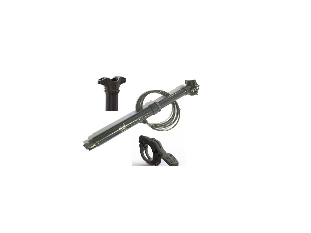 Teleskopická sedlovka Lapierre s vnútorným vedením káblov, dostupná s tromi rôznymi zdvihmi. S hmotnosťou 490 gramov v rozmere 400/125 mm je to jedna z najľahších teleskopických sedloviek na trhu. Veľkou výhodou je aj dobre tvarovaná kovová ovládacia páka, ktorá zabezpečuje najvyšší komfort pri ovládaní teleskopickej sedlovky. Priemer: 31,6 mmVýška: 100 / 125 / 150 mmDĺžky: 380 / 380 / 435 mmMontáž ovládacích pák na pravé a ľavé riadidláMateriál: AL 7000PTFE posuvné Kufre na minimalizáciu bočnej vôleTesnenia hrotov