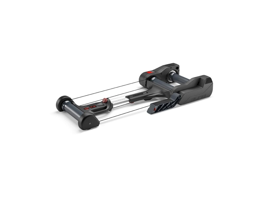 Elektronicky ovládaná magnetická jednotka, integrovaná rukoväť, zasúvateľná podnožka, stúpanie do 6%, možnosť nastavenia na rôzne veľkosti bicyklov, skladanie v 3 sekciách, plávajúci rám a parabolické valce. Kompatibilné s aplikáciami a softvérom tretích strán v počítačoch, smartfónoch, tabletoch a cyklo-počítačoch s protokolmi ANT+ FE-C a Bluetooth Smart.