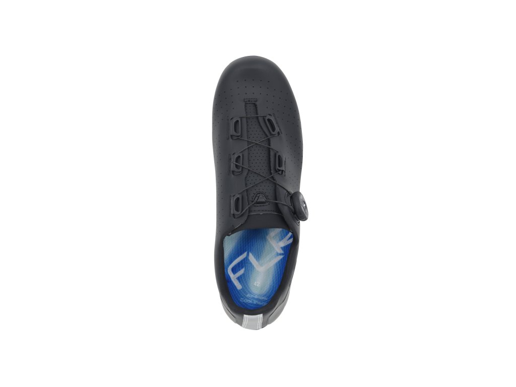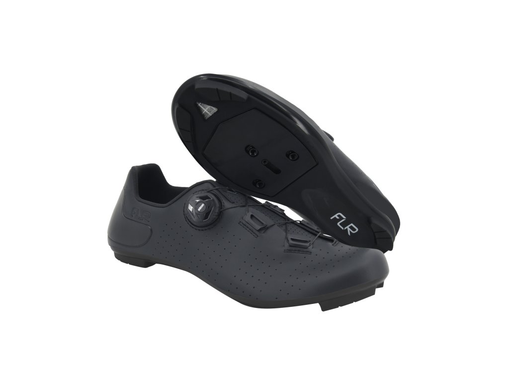 FLR F3 sú cestné tretry navrhnuté pre cyklistov, ktorí hľadajú ideálnu rovnováhu medzi výkonom, pohodlím a dostupnou cenou. Vďaka pevnej podrážke, komfortnému strihu a spoľahlivému upínaciemu systému poskytujú výborný prenos sily na pedále bez kompromisov v pohodlí počas dlhších jázd. Ideálna voľba pre náročných hobby jazdcov aj začínajúcich pretekárov.Technické spracovanie a kľúčové vlastnosti:Tretry F3 majú nylonovú podrážku s karbónovým kompozitom, ktorá zabezpečuje vysokú tuhosť a efektívny prenos energie. Zvršok z mikrovlákna je odolný a zároveň priedušný, takže noha zostáva v suchu aj počas dlhých tréningov. O dokonalé upevnenie sa stará kombinácia presného kolieska ATOP, čo umožňuje individuálne prispôsobenie tvaru chodidla. Podrážka je kompatibilná s trojotvorovým systémom SPD-SL.Hlavné prednosti: Tuhá podrážka z nylonu s karbónovým kompozitom pre efektívny prenos sily Ľahký a priedušný zvršok z mikrovlákna Upínací systém ATOP pre presné a bezpečné upevnenie Protišmyková päta pre stabilitu pri chôdzi Reflexné prvky pre lepšiu viditeľnosť Kompatibilita s SPD-SL (3-otvorové kufre) Hmotnosť cca 275 g (veľkosť 42)