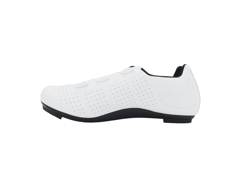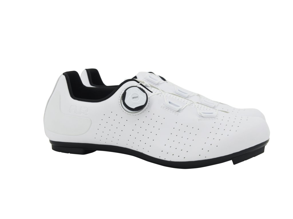 FLR F3 sú cestné tretry navrhnuté pre cyklistov, ktorí hľadajú ideálnu rovnováhu medzi výkonom, pohodlím a dostupnou cenou. Vďaka pevnej podrážke, komfortnému strihu a spoľahlivému upínaciemu systému poskytujú výborný prenos sily na pedále bez kompromisov v pohodlí počas dlhších jázd. Ideálna voľba pre náročných hobby jazdcov aj začínajúcich pretekárov.Technické spracovanie a kľúčové vlastnosti:Tretry F3 majú nylonovú podrážku s karbónovým kompozitom, ktorá zabezpečuje vysokú tuhosť a efektívny prenos energie. Zvršok z mikrovlákna je odolný a zároveň priedušný, takže noha zostáva v suchu aj počas dlhých tréningov. O dokonalé upevnenie sa stará kombinácia presného kolieska ATOP, čo umožňuje individuálne prispôsobenie tvaru chodidla. Podrážka je kompatibilná s trojotvorovým systémom SPD-SL.Hlavné prednosti: Tuhá podrážka z nylonu s karbónovým kompozitom pre efektívny prenos sily Ľahký a priedušný zvršok z mikrovlákna Upínací systém ATOP pre presné a bezpečné upevnenie Protišmyková päta pre stabilitu pri chôdzi Reflexné prvky pre lepšiu viditeľnosť Kompatibilita s SPD-SL (3-otvorové kufre) Hmotnosť cca 275 g (veľkosť 42)