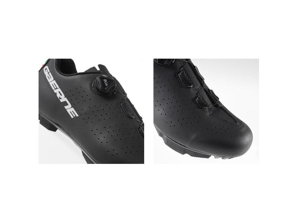 MTB tretry G.TRAIL kombinujú hlavné vlastnosti špičkových tretier na horskú cyklistiku, aby spĺňali potreby nadšencov všetkých úrovní a poskytovali vynikajúci zážitok za dostupnú cenu. Tento model vás bude sprevádzať na všetkých vašich dobrodružstvách a skvele sa hodí aj na spinningové tréningy.Zvršok z mikrovlákna je perforovaný, aby optimalizoval priedušnosť a ventiláciu a zabezpečil svieže a suché nohy počas celej jazdy.Vnútorná časť tretier je vybavená sieťovinou, ktorá poskytuje oporu chodidlu a zlepšuje stabilitu.Systém zapínania, vybavený kolieskom BOA L6 s možnosťou mikronastavenia, zaručuje presné, rýchle a prispôsobené stiahnutie bez vzniku tlakových bodov.Systém COMFORT FIT TONGUE obsahuje vrstvu high-tech polstrovania, ktoré zlepšuje pohodlie a priedušnosť.Anatomická päta INTEGRATED ANTI SLIP CUP, integrovaná do zvršku, zvyšuje stabilitu a kontrolu chodidla.Anatomická EPS TRANSPIRANT INSOLE zabezpečuje pohodlie a efektivitu pri šliapaní.Podrážka MTB 2DENSITY je špeciálne navrhnutá tak, aby vyhovovala potrebám horskej cyklistiky. Je vyrobená zo zmesi nylonu a sklených vlákien, vďaka čomu ponúka ideálnu rovnováhu medzi odolnosťou a nízkou hmotnosťou.Štruktúra behúňa zabezpečuje optimálnu priľnavosť a stabilitu v rôznych typoch terénu, zatiaľ čo možnosť pridať dva odnímateľné hroty v prednej časti umožňuje ešte lepšiu trakciu na prašných alebo blatistých cestách.G.TRAIL je hrdou súčasťou talianskej tradície výroby prémiovej cyklistickej obuvi.