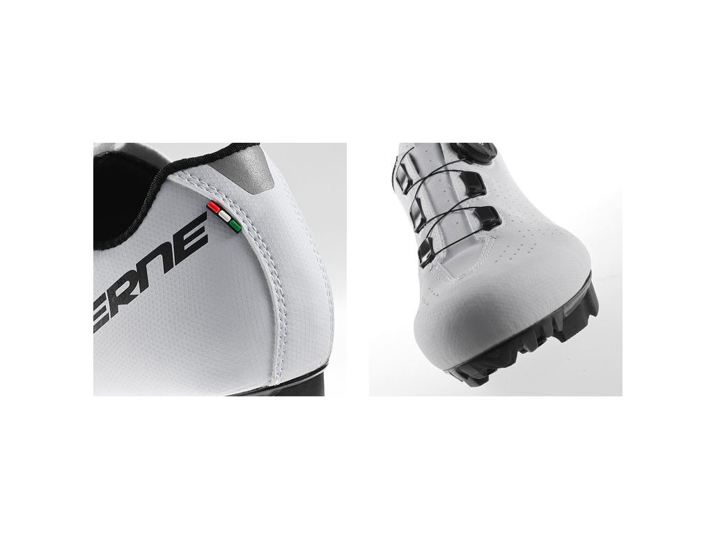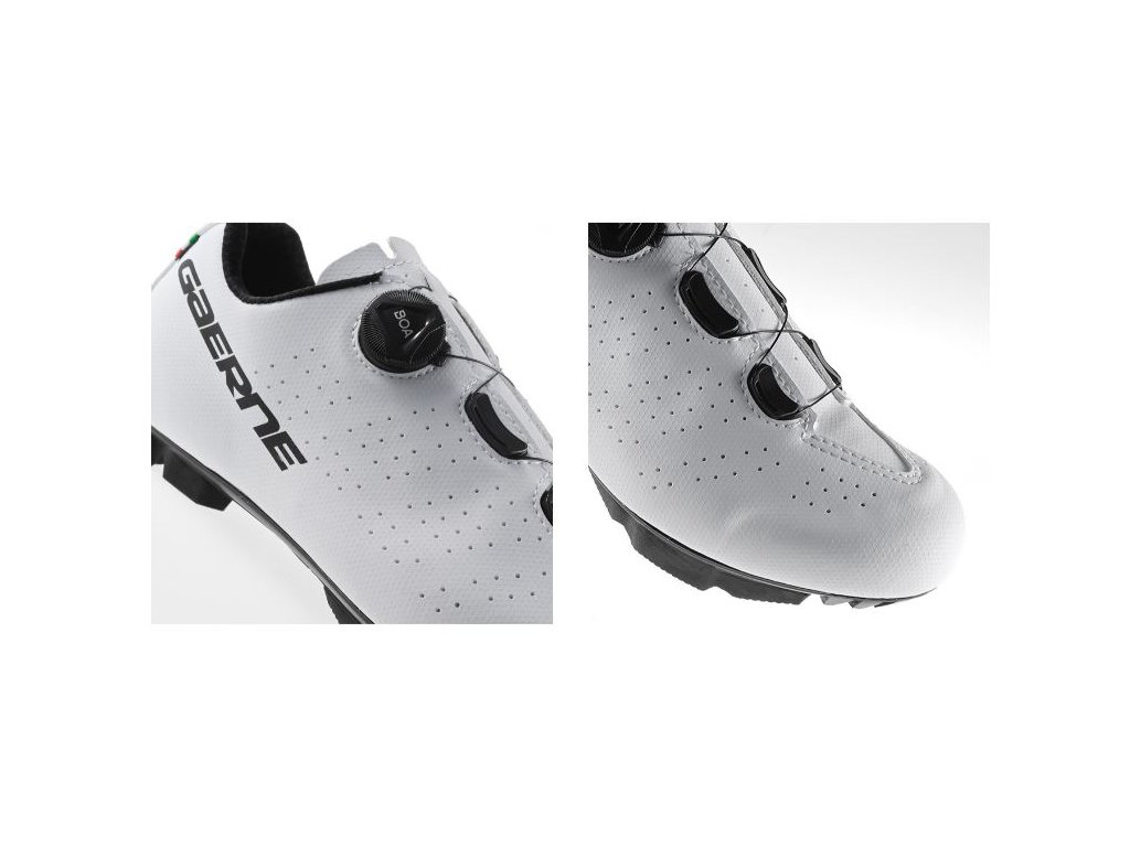 MTB tretry G.TRAIL kombinujú hlavné vlastnosti špičkových tretier na horskú cyklistiku, aby spĺňali potreby nadšencov všetkých úrovní a poskytovali vynikajúci zážitok za dostupnú cenu. Tento model vás bude sprevádzať na všetkých vašich dobrodružstvách a skvele sa hodí aj na spinningové tréningy.Zvršok z mikrovlákna je perforovaný, aby optimalizoval priedušnosť a ventiláciu a zabezpečil svieže a suché nohy počas celej jazdy.Vnútorná časť tretier je vybavená sieťovinou, ktorá poskytuje oporu chodidlu a zlepšuje stabilitu.Systém zapínania, vybavený kolieskom BOA L6 s možnosťou mikronastavenia, zaručuje presné, rýchle a prispôsobené stiahnutie bez vzniku tlakových bodov.Systém COMFORT FIT TONGUE obsahuje vrstvu high-tech polstrovania, ktoré zlepšuje pohodlie a priedušnosť.Anatomická päta INTEGRATED ANTI SLIP CUP, integrovaná do zvršku, zvyšuje stabilitu a kontrolu chodidla.Anatomická EPS TRANSPIRANT INSOLE zabezpečuje pohodlie a efektivitu pri šliapaní.Podrážka MTB 2DENSITY je špeciálne navrhnutá tak, aby vyhovovala potrebám horskej cyklistiky. Je vyrobená zo zmesi nylonu a sklených vlákien, vďaka čomu ponúka ideálnu rovnováhu medzi odolnosťou a nízkou hmotnosťou.Štruktúra behúňa zabezpečuje optimálnu priľnavosť a stabilitu v rôznych typoch terénu, zatiaľ čo možnosť pridať dva odnímateľné hroty v prednej časti umožňuje ešte lepšiu trakciu na prašných alebo blatistých cestách.G.TRAIL je hrdou súčasťou talianskej tradície výroby prémiovej cyklistickej obuvi.