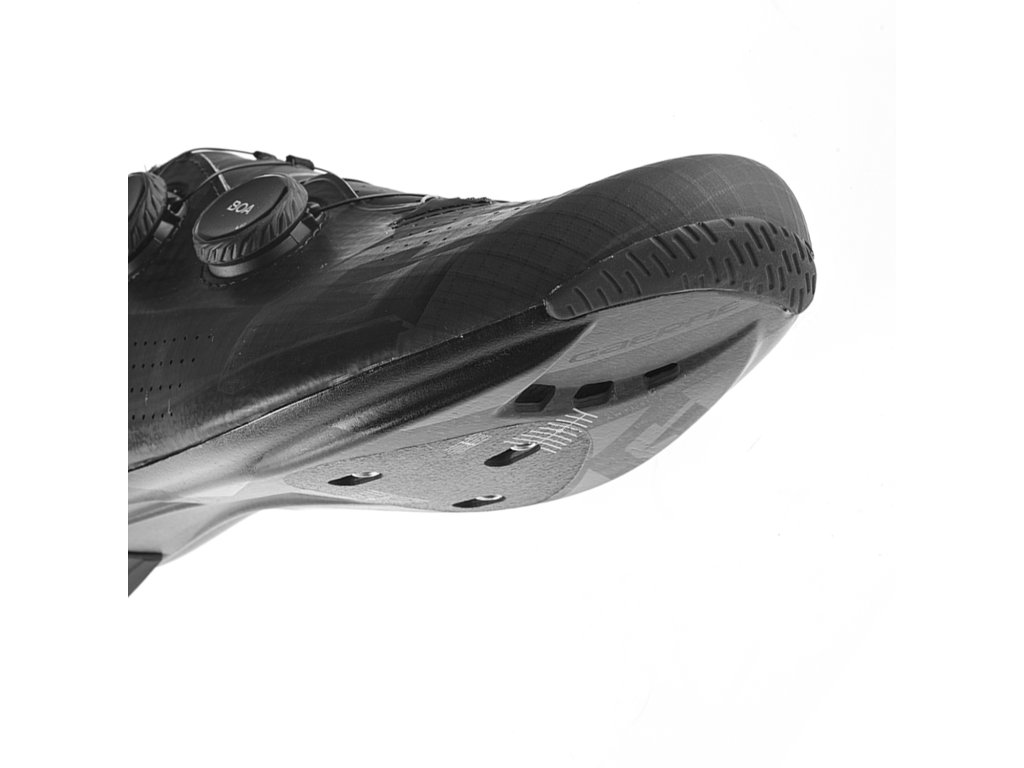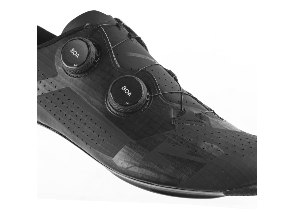 Gaerne G.JET predstavujú prémiovú voľbu pre cestnú cyklistiku, zameranú na závodný výkon, maximálny prenos energie a komfort počas dlhých jázd. Spájajú moderné technológie, precízny dizajn a spoluprácu s profesionálnymi športovcami, čo je zárukou špičkovej kvality. • Ultraľahká konštrukcia: Použitie technológie G.Frametex zaisťuje ľahkosť a pevnosť, vďaka čomu sa topánky prispôsobia vysokému výkonu bez kompromisov. • Ventilácia a pohodlie: Perforovaný zvršok, štyri vetracie otvory na podrážke a priedušná vložka INSOLE udržujú nohy suché a svieže aj pri vysokej intenzite. • BOA Li2 DIAL F: Mikronastaviteľný systém zaručuje presné utiahnutie, stabilitu a jednoduché prispôsobenie podľa potreby. • Podrážka EPS Lightweight Full Carbon Sole 12.0: Ultratenká, s indexom tuhosti 12, je ideálna pre efektívny prenos každého wattu energie. Protišmykové prvky a vymeniteľná päta zaisťujú praktickosť a trvanlivosť. • Anatomická päta a vložka: Zlepšujú stabilitu nohy, minimalizujú únavu a prispievajú k maximálnemu výkonu.Tretry G.JET sú navrhnuté pre pretekárov a pokročilých jazdcov, ktorí hľadajú bezkonkurenčný výkon a štýl na cestnom bicykli. Sú ideálnou voľbou pre tých, ktorí chcú kombináciu špičkovej technológie a maximálneho pohodlia pri závodnom nasadení aj dlhých tréningoch.