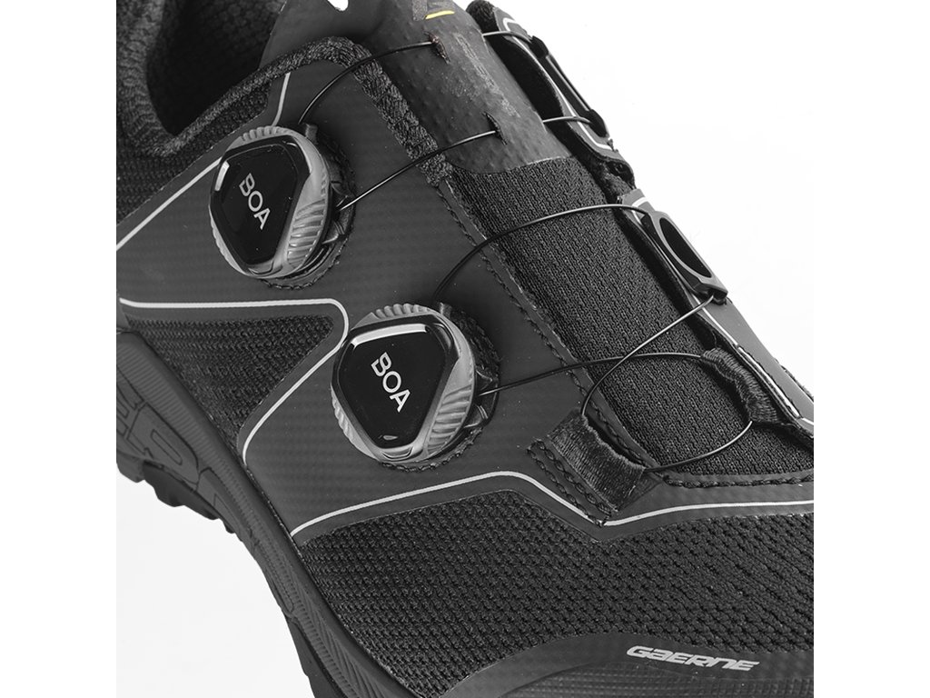 All mountain tretry GAERNE G. Quasar sú ľahké topánky s dvoma BOA L6 kolieskami pre čo najpresnejšie upevnenie na nohe a možnosťou pripevniť SPD kufre.