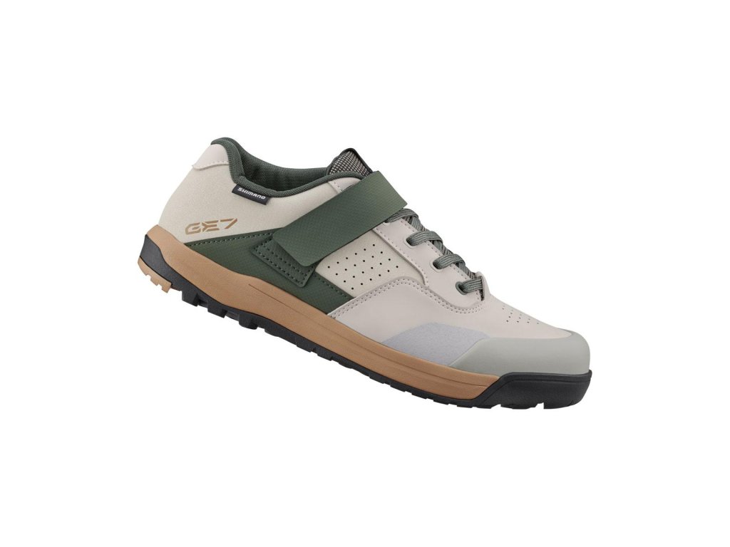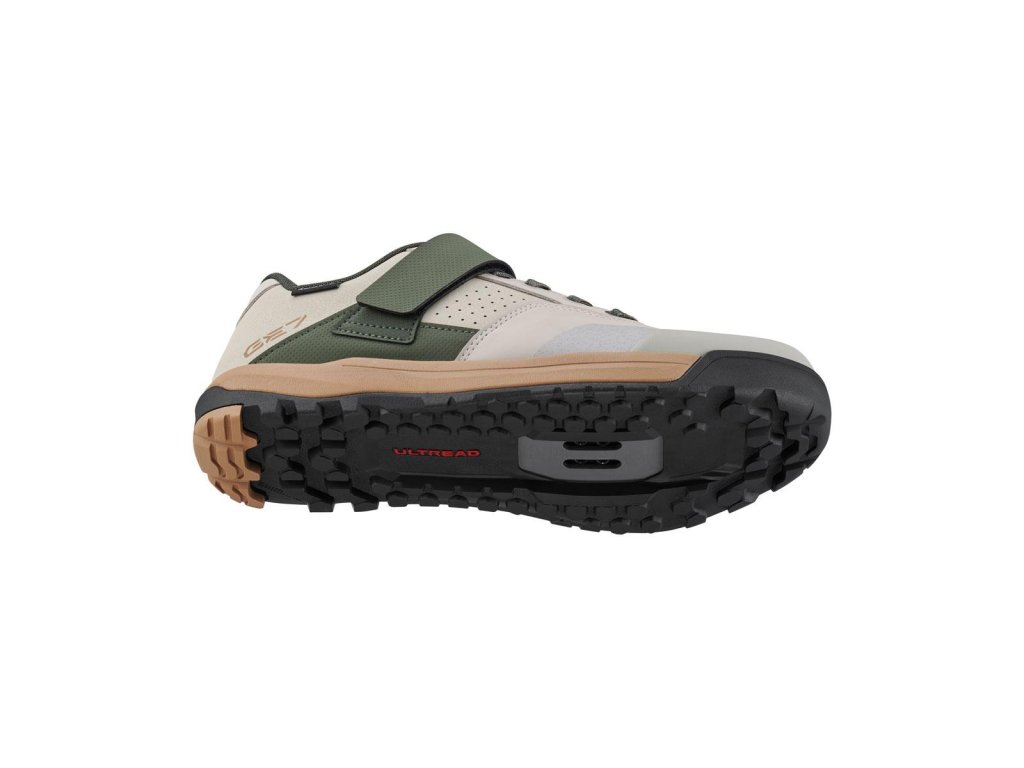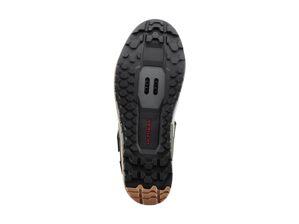 Gumená zmes SHIMANO ULTREAD GE optimalizovaná pre enduro a vzor dezénu podrážky zaisťujú spoľahlivé šliapanie a priľnavosť na bicykli aj mimo neho.