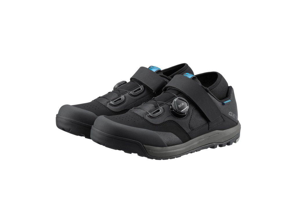 Gumená zmes SHIMANO ULTREAD GE optimalizovaná pre enduro a vzor dezénu podrážky zaisťujú spoľahlivé šliapanie a priľnavosť na bicykli aj mimo neho.