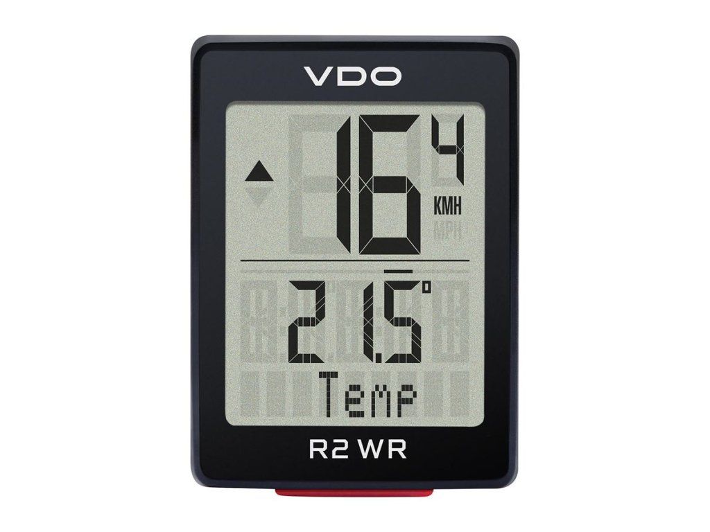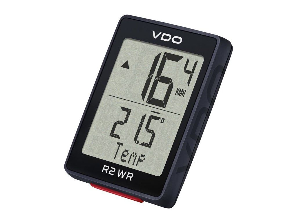 S drátovým computerem VDO R2 WR máte na cestě do kanceláře, na tréninku nebo na víkendové vyjížďce vždy přehled o deseti nejdůležitějších hodnotách své jízdy. Computer R2 WR zobrazuje okamžitou rychlost, ujetou denní vzdálenost, čas jízdy, hodiny, průměrnou a maximální rychlost, celkovou vzdálenost a čas jízdy a také aktuální teplotu. Navíc porovnává průměrnou a aktuální rychlost. To vás motivuje k rychlejší jízdě a překonávání vlastních rychlostních rekordů. Nastavení a ovládání R2 WR je super snadné pomocí červeného tlačítka menu. Nastavení obvodu kola je další snadnou záležitostí, protože si můžete vybrat z integrované tabulky plášťů. Držák na řídítka pro vodotěsný computer lze rychle namontovat na kolo pomocí přiložených stahovacích pásků. Computer lze poté snadno vyjmout a uschovat, čímž jej ochráníte před možným odcizením. Drátové propojení vysílače a computeru zajišťuje plynulé a bezproblémové měření rychlosti. Baterie (CR2032) postačí k napájení computeru po dobu delší než dva roky.