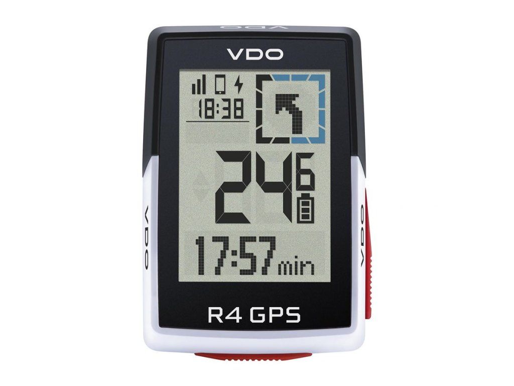 Velký displej, snadné ovládání a 14 funkcí: GPS computer řady R zobrazuje všechny základní údaje, které ocení začátečníci i pokročilí jezdci. Kromě zobrazení rychlosti, denní ujeté vzdálenosti a času jízdy či tréninku poskytuje tento chytrý computer také navigační funkce a lze jej spárovat s kompatibilními elektrokoly. Vysoce kontrastní 2-palcový displej s extra velkými číslicemi je dobře čitelný i za jízdy. Zvýrazněný modrý čtverec v pravé horní části displeje umožňuje nový způsob zobrazení tréninkových dat. V kombinaci s aplikací SIGMA RIDE pro chytré telefony lze pomocí několika kliknutí nastavit až šest individuálních zobrazení tréninkových dat. VDO R4 GPS se montuje na řídítka pomocí předsazeného držáku (součástí balení), takže computer je umístěn centrálně nad představcem. Držák pasuje na řídítka o průměru 31,8 až 35 mm. Instalace kabelů a senzorů není nutná.