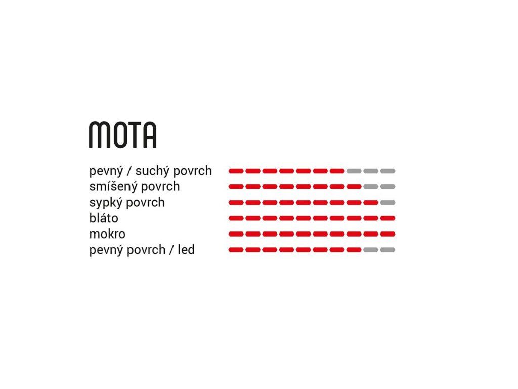 který v nich pak bez větších obtíží nachází dostatečnou oporu. Mota je připravena být oporou všude tam, kde je i za mokra potřeba maximální adheze a jistota.