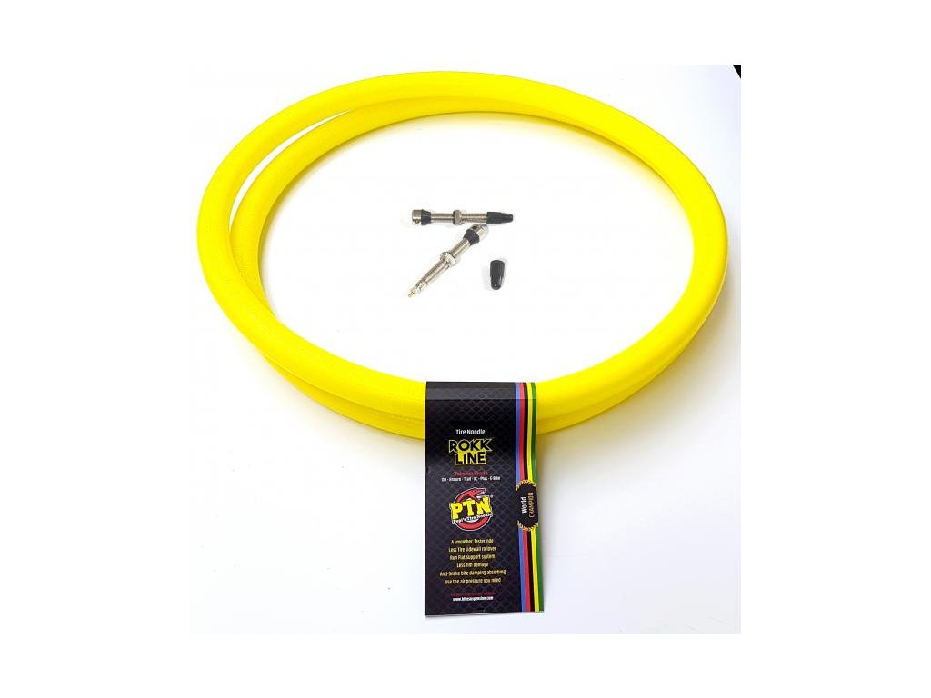 Rokk Line vhodný pre najdrsnejšie podmienky. Exkluzívny materiál vyvinutý špeciálne pre PTN. Ľahké a veľmi silné ochranné vložky do ráfika. Špeciálne vyvinutý penový materiál so špeciálnou vonkajšou povrchovou úpravou v atraktívnej citrónovo žltej fa