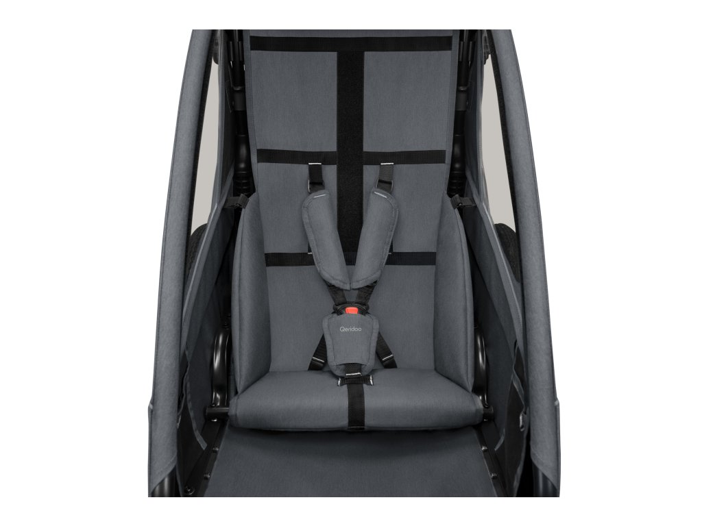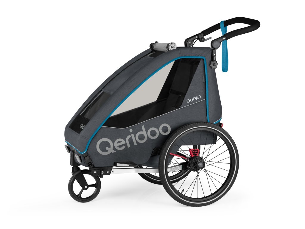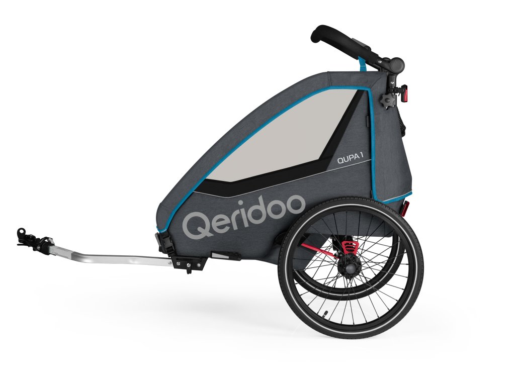 Jednomiestny odpružený detský vozík za bicykel Qeridoo Qupa1. Ponúka komfortné sedadlo s adaptívnym 5-bodovým pásom a kočíkové koliesko Multiwheel s funkciou aretácie. Odporúčame pre deti s maximálnou výškou 116,5 cm. KOMFORTKomfortné sedadlo s adaptívnym 5-bodovým pásom Multiwheel - kočíkové koliesko s funkciou jogger (aretácia) Výškovo nastaviteľná tlačná rukoväť s ochranou pri prevrátení Strešný kryt 3v1 (ochrana proti hmyzu, ochrana proti slnku a ochrana proti striekajúcej vode) Ťažné zariadenie s univerzálnou spojkou a funkciou rýchlej výmeny BDS+ Systém tlmenia listového pera pomocou elastoméru Parkovacia brzda s ovládaním z rukoväte Praktický úložný priestor Kompaktný rozmer po zloženíROZMERYVýška kabíny: 90 cm Výška rukoväte: 68 - 125 cm Rozmery v zloženom stave: 105 x 62 x 36 cm Max. celková hmotnosť: 50 kg Objem kufra: 30 l BEZPEČNOSŤKonštruované a testované podľa DIN EN 15918/testované na škodlivé látky Vystužený hliníkový rám s ochranou podlahy Nízke ťažisko pre väčšiu stabilitu Zvýšená svetlá výška vnútorného priestoru Ochrana proti nárazu zozadu Upínací systém s 5-bodovým bezpečnostným pásom a inovatívnym ovládaním Postranné chrániče hlavy s reflexnou fóliou Reflexné prvky na plášťochOBSAH BALENIAKabína s hnacou nápravou, odpružením BDS a parkovacou brzdou Kočíkové koliesko s funkciou jogger (aretácia) 20" kolesá s reflexnými prvkami Výškovo nastaviteľná rukoväť Nasúvací deflector (chránič) kolesa Nasúvacie chrániče hlavy Nasúvací kryt listového odpruženia Ťažná tyč s pružinou Univerzálna spojka s redukciou M5 Zadné svetlo Bezpečnostná vlajka Imbusový kľúč a kľúč veľkosť 13 Manuál
