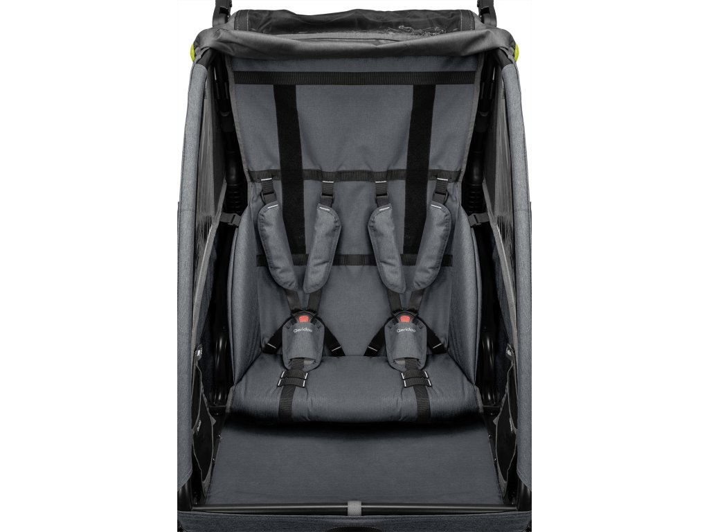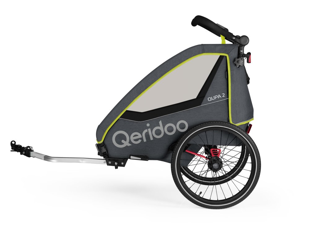 Dvojmiestny odpružený detský vozík za bicykel Qeridoo Qupa 2. Ponúka komfortné sedadlá s adaptívnym 5-bodovým pásom a kočíkové koliesko Multiwheel s funkciou aretácie. Odporúčame pre deti s maximálnou výškou 116,5 cm.KOMFORTKomfortné sedadlo s adaptívnym 5-bodovým pásomMultiwheel - kočíkové koliesko s funkciou jogger (aretácia)Výškovo nastaviteľná tlačná rukoväť s ochranou pri prevráteníStrešný kryt 3v1 (ochrana proti hmyzu, ochrana proti slnku a ochrana proti striekajúcej vode)Ťažné zariadenie s univerzálnou spojkou a funkciou rýchlej výmenyBDS+ Systém tlmenia listového pera pomocou elastoméruParkovacia brzda s ovládaním z rukovätePraktický úložný priestorKompaktný rozmer po zloženíROZMERYVýška kabíny: 90 cmVýška rukoväte: 68 - 125 cmRozmery v zloženom stave: 105 x 76 x 36 cmMax. celková hmostnosť: 60 kgObjem kufra: 40 lBEZPEČNOSŤKonštruované a testované podľa DIN EN 15918/testované na škodlivé látkyVystužený hliníkový rám s ochranou podlahyNízke ťažisko pre väčšiu stabilituZvýšená svetlá výška vnútorného priestoruOchrana proti nárazu zozaduUpínací systém s 5-bodovým bezpečnostným pásom a inovatívnym ovládanímPostranné chrániče hlavy s reflexnou fóliouReflexné prvky na plášťochOBSAH BALENIAKabína s hnacou nápravou, odpružením BDS a parkovacou brzdouKočíkové koliesko s funkciou jogger (aretácia)20" kolesá s reflexnými prvkamiVýškovo nastaviteľná rukoväťNasúvací deflector (chránič) kolesaNasúvacie chrániče hlavyNasúvací kryt listového odpruženiaŤažná tyč s pružinouUniverzálna spojka s redukciou M5Zadné svetloBezpečnostná vlajkaImbusový kľúč a kľúč veľkosť 13Manuál
