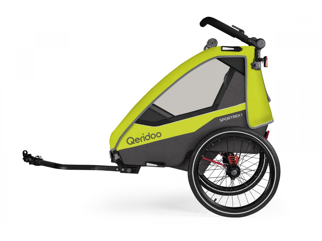 Jednomiestny odpružený detský vozík za bicykel Qeridoo Sportrex 1. Komfortné sedadlo s adaptívnym 5-bodovým pásom. KOMFORTKomfortné sedadlo s adaptívnym 5-bodovým pásomMultiwheel – kočíkové koliesko s funkciou jogger (aretácia)Výškovo nastaviteľná tlačná rukoväť s ochranou pri prevráteníStrešný kryt 3v1 (ochrana proti hmyzu, ochrana proti slnku a ochrana proti striekajúcej vode)Ťažné zariadenie s univerzálnou spojkou a funkciou rýchlej výmeny360 ° ventilačný systémBDS + Systém tlmenia listovej pružiny pomocou elastoméruParkovacia brzda s ovládaním z rukovätePraktický úložný priestorZosilnené dno úložného priestoruOdnímateľný sedákKompaktný rozmer po zložení BEZPEČNOSŤKonštruované a testované podľa DIN EN 15918/s testom na škodlivé látkyVystužený hliníkový rám s ochranou podlahyNízke ťažisko pre väčšiu stabilituZvýšená svetlá výška vnútorného priestoruOchrana proti nárazu zozaduUpínací systém s 5-bodovým bezpečnostným pásom a inovatívnym ovládanímPostranné chrániče hlavy s reflexnou fóliouReflexné prvky na plášťoch, strešnom kryte a kapoteTkané chrániče chrbta OBSAH BALENIAKabína s nápravou a odpružením BDS + a parkovacou brzdouKočíkové koliesko s funkciou jogger (aretácia)20" kolesá s reflexnými prvkamiVýškovo nastaviteľná rukoväťNasúvací deflector (chránič) kolesaNasúvacia chrániče hlavyNasúvací kryt lístkového odpruženiaŤažná tyč s pružinouUniverzálna spojka s redukciou M5Zadné svetloBezpečnostná vlajkaOpierky hlavyImbusový kľúč a kľúč veľkosť 13Manuál