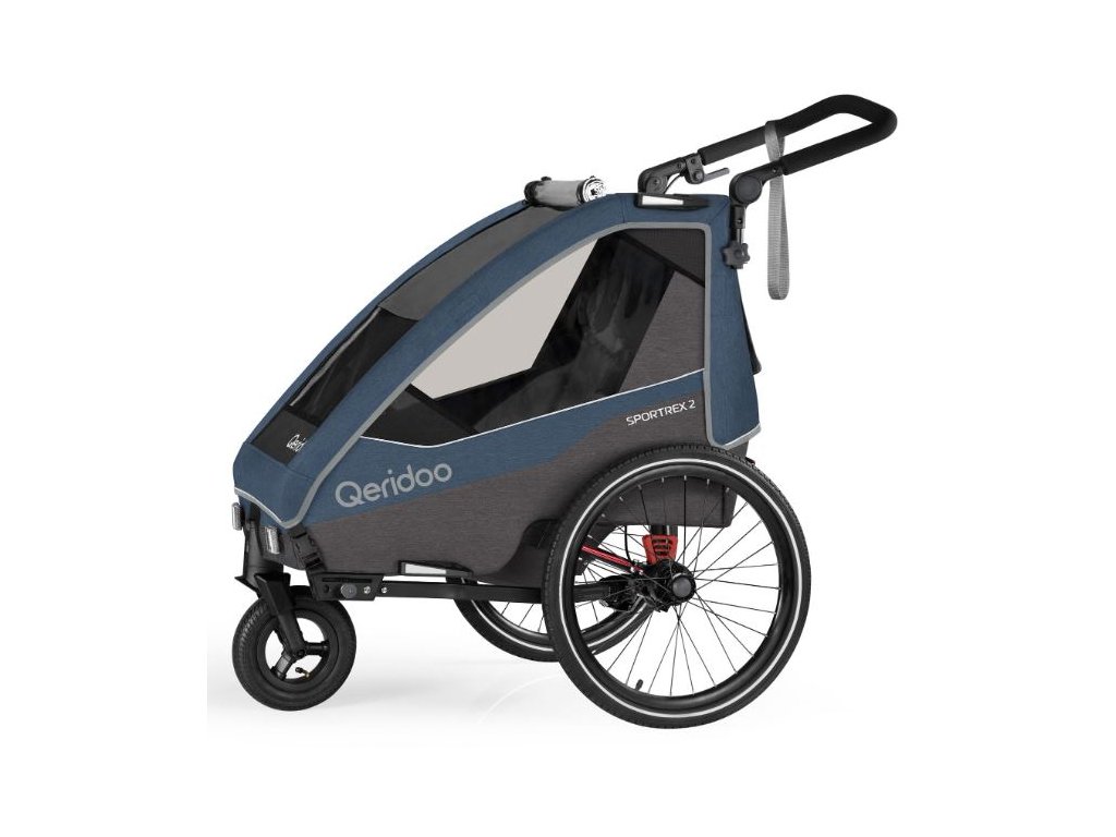 Dvojmiestny odpružený detský vozík za bicykel Qeridoo Sportrex 2. KOMFORT:Komfortné sedadlá s adaptívnymi 5-bodovými pásmi.Multiwheel – kočíkové koliesko s funkciou jogger (aretácia)Výškovo nastaviteľná tlačná rukoväť s ochranou pri prevráteníStrešný kryt 3v1 (ochrana proti hmyzu, ochrana proti slnku a ochrana proti striekajúcej vode)Ťažné zariadenie s univerzálnou spojkou a funkciou rýchlej výmenyStorage compartment for the upper roof cover360° ventilačný systémBDS+ Systém tlmenia listového pera pomocou elastoméruParkovacia brzda s ovládaním z rukovätePraktické úložný priestorZosilnené dno úložného priestoruOdnímateľný sedákKompaktný rozmer po zloženíBEZPEČNOSŤ:Konštruované a testované podľa DIN EN 15918/ s testom na škodlivé látkyVystužený hliníkový rám s ochranou podlahyNízke ťažisko pre väčšiu stabilituZvýšená svetlá výška vnútorného priestoruOchrana proti nárazu zozaduUpínací systém s 5-bodovým bezpečnostným pásom a inovatívnym ovládanímPostranné chrániče hlavy s reflexnou fóliouReflexné prvky na plášťoch, strešnom kryte a kapoteTkané chrániče chrbtaOBSAH BALENIA:Kabína s nápravou a odpružením BDS+ a parkovacou brzdouKočíkové koliesko s funkciou jogger (aretácia)20“ kolesá s reflexnými prvkamiVýškovo nastaviteľná rukoväťNasúvací deflector (chránič) kolesaNasúvacie chrániče hlavyNasúvací kryt listového odpruženiaŤažná tyč s pružinouUniverzálna spojka s redukciou M5Zadné svetloBezpečnostná vlajkaOpierky hlavyImbusový kľúč a kľúč veľkosť 13Manuál